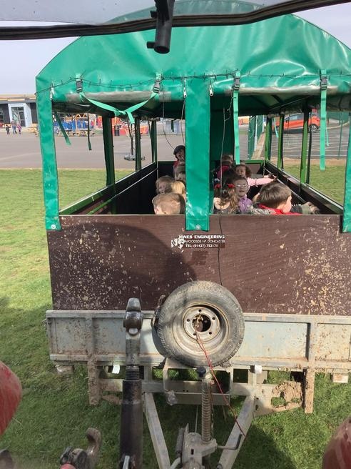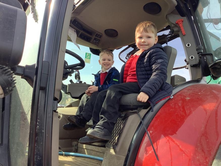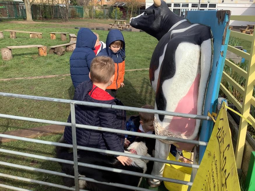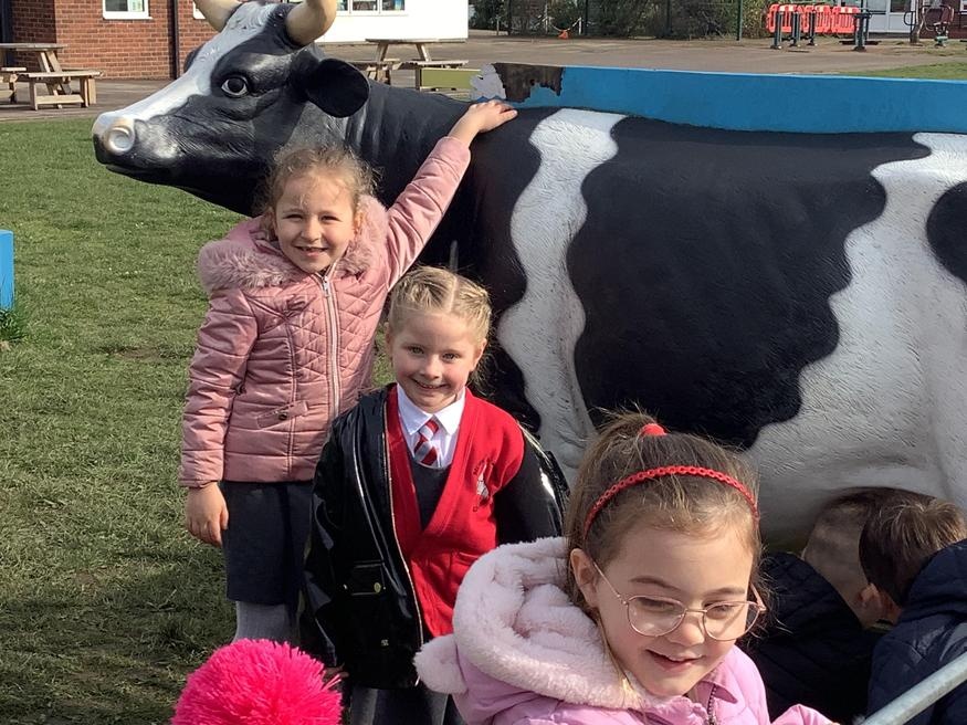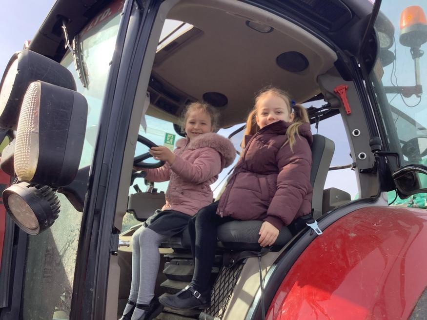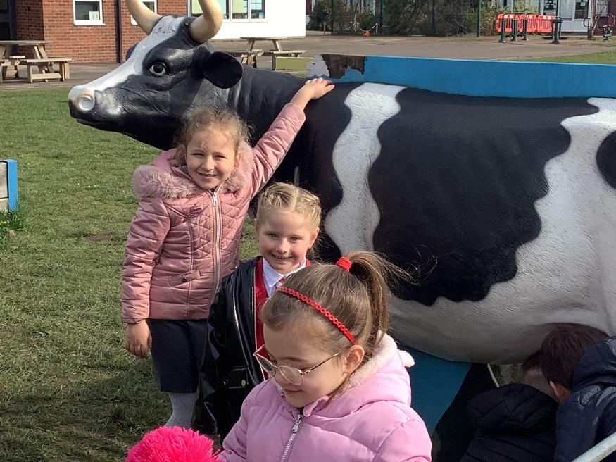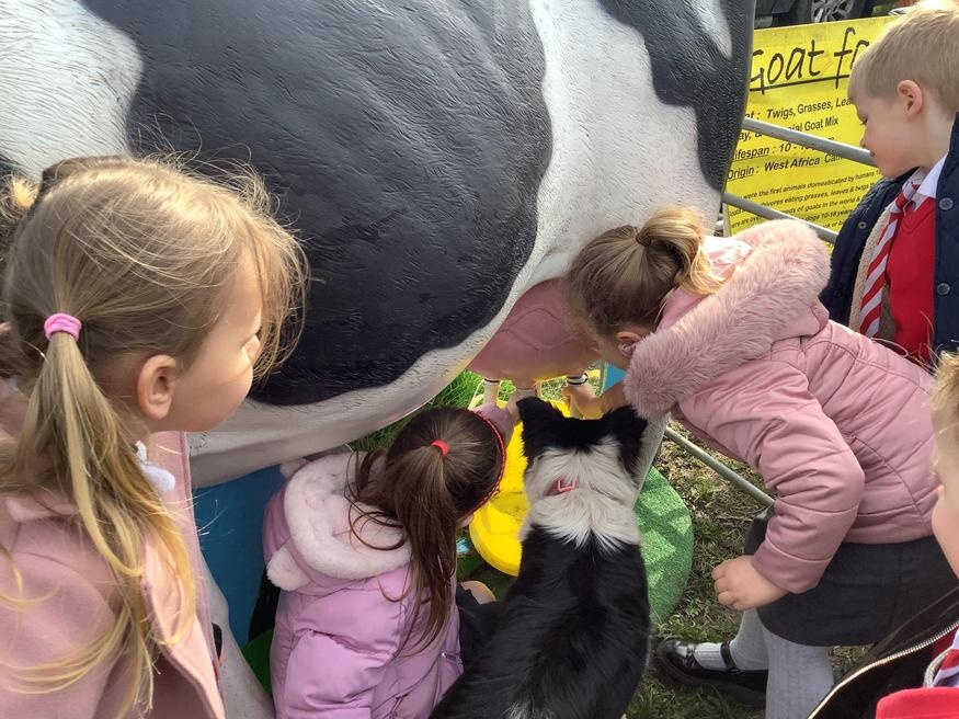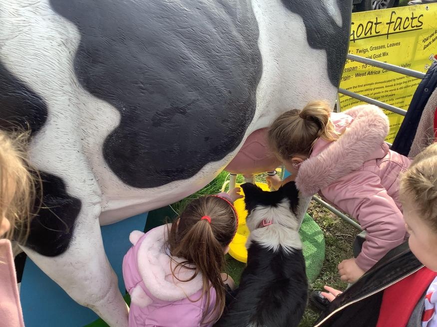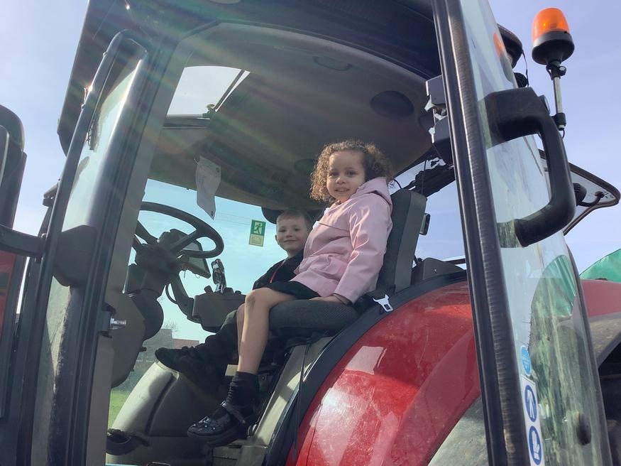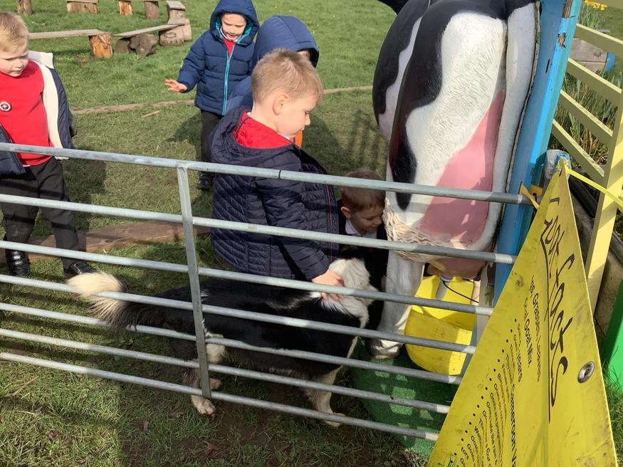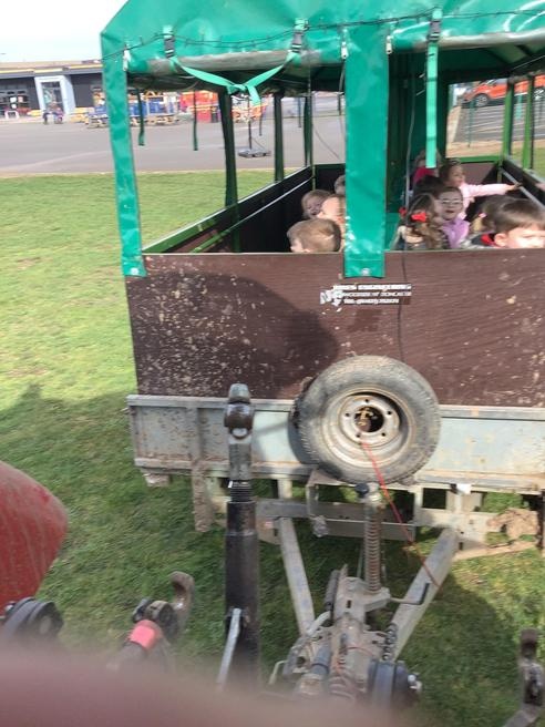 The grown ups in school were all dressed as farmers, animals and scarecrows , and then we got to meet farm animals, practice what it would be like milking a cow and even go on a tractor ride, and sit in the tractor!!