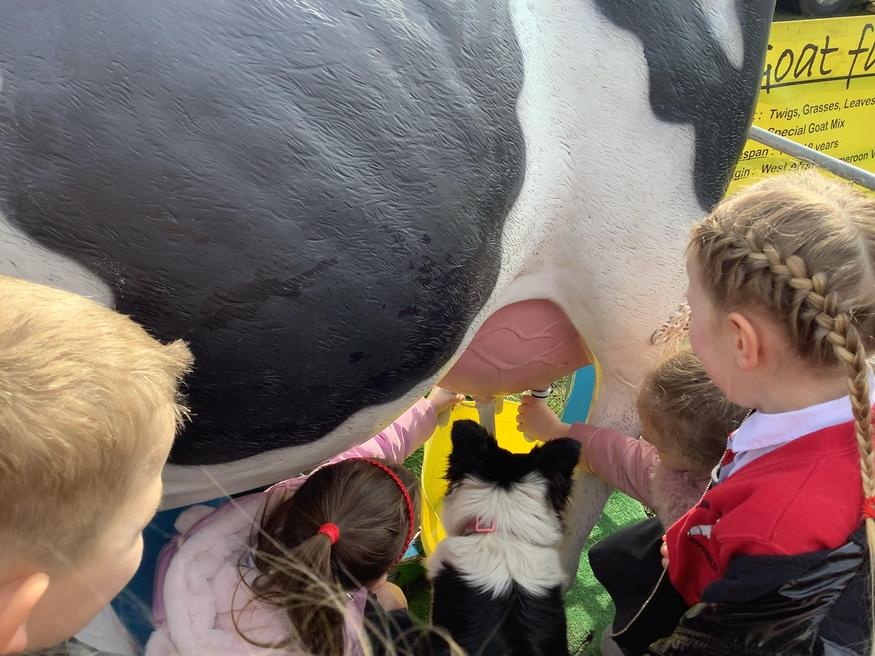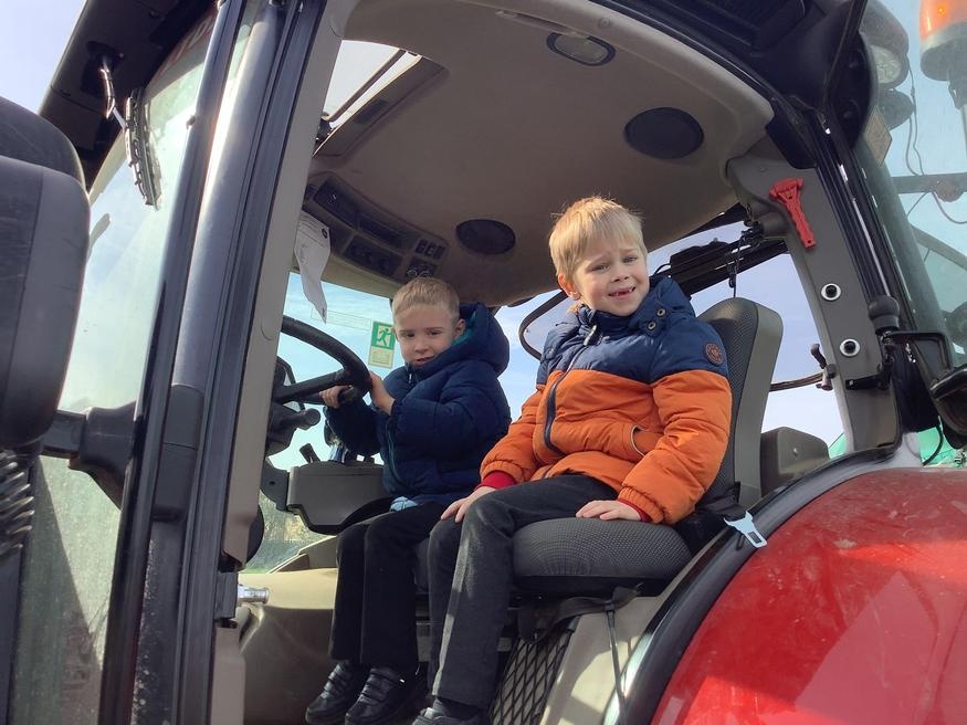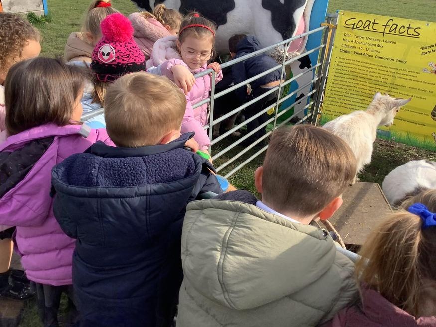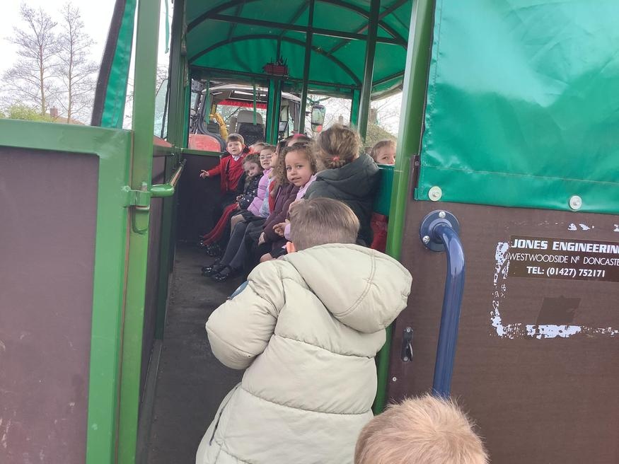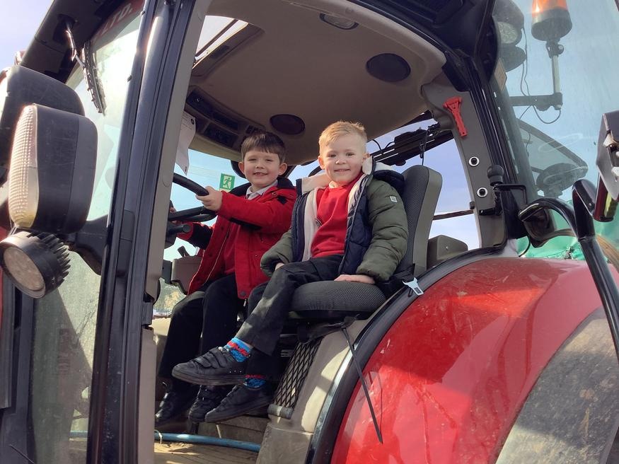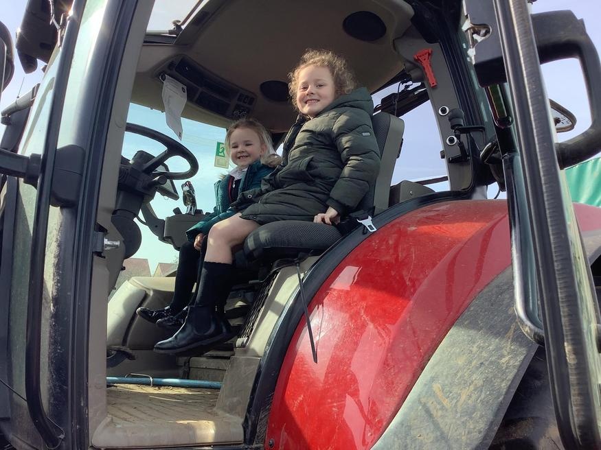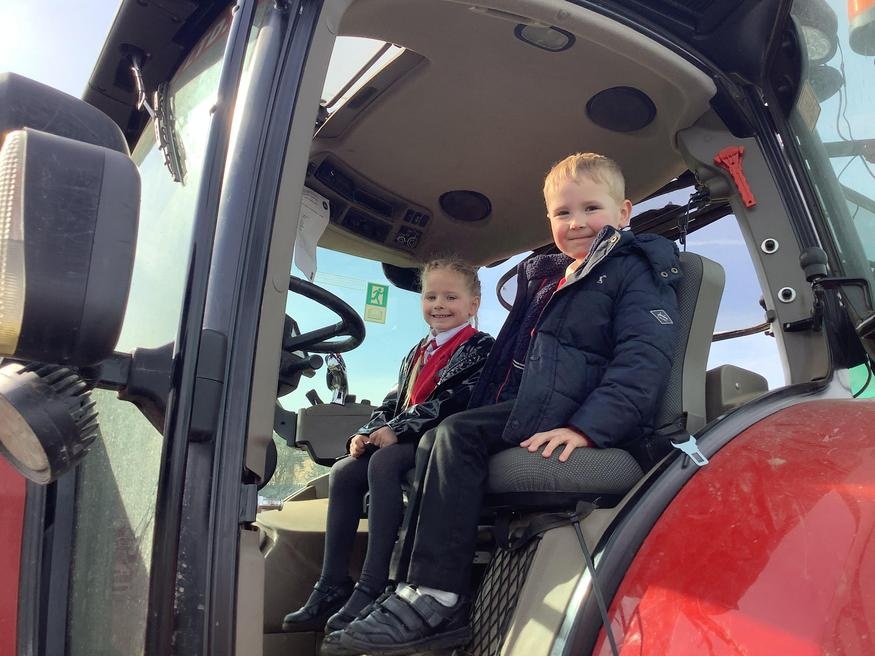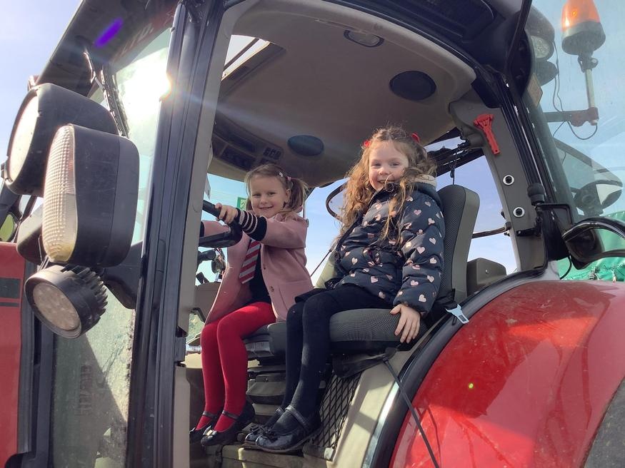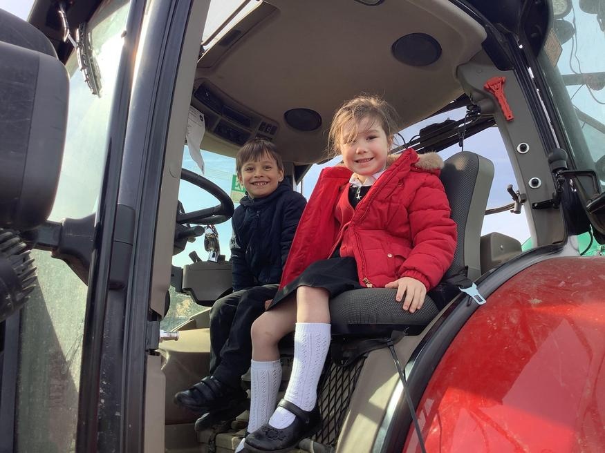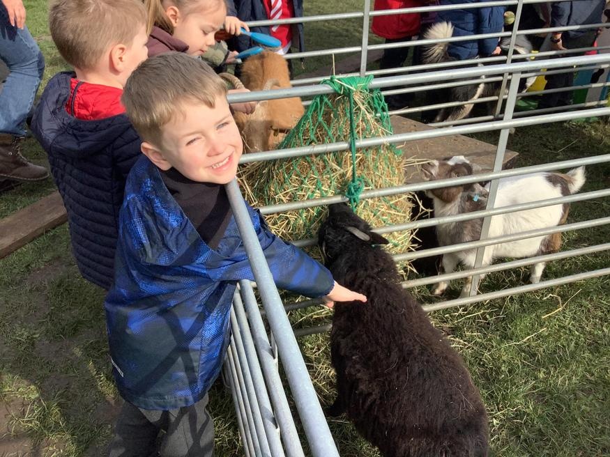 The grown ups in school were all dressed as farmers, animals and scarecrows , and then we got to meet farm animals, practice what it would be like milking a cow and even go on a tractor ride, and sit in the tractor!!