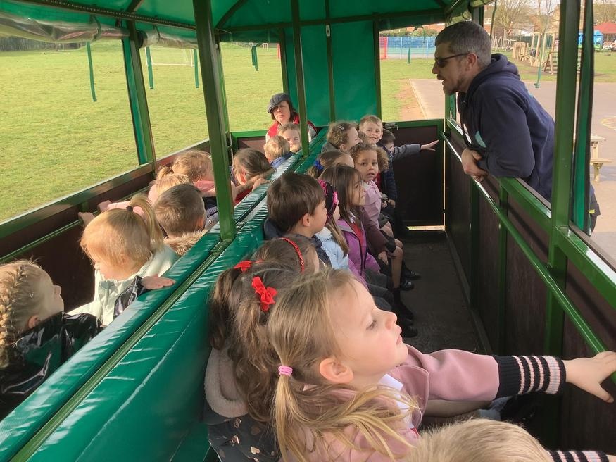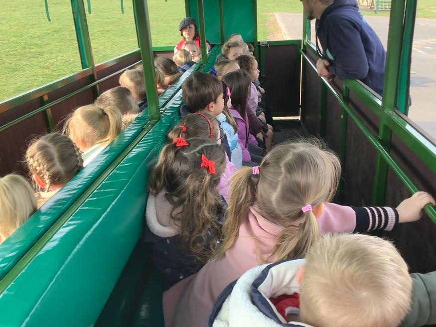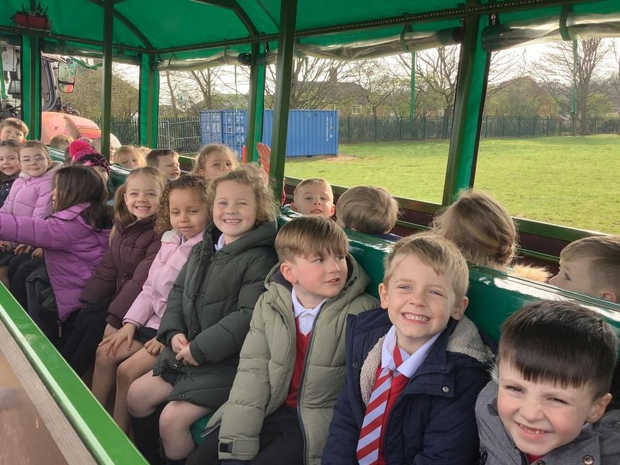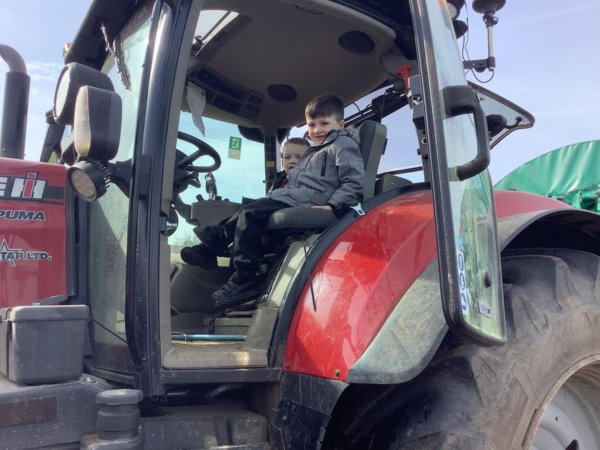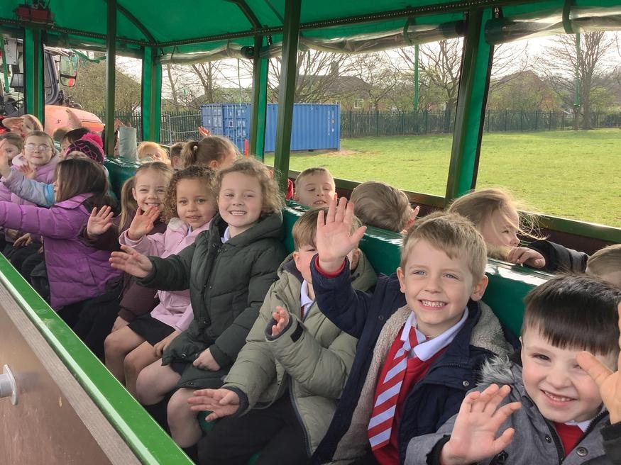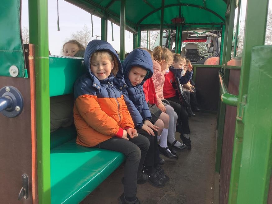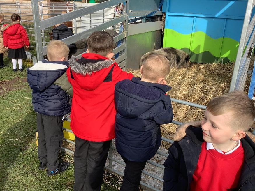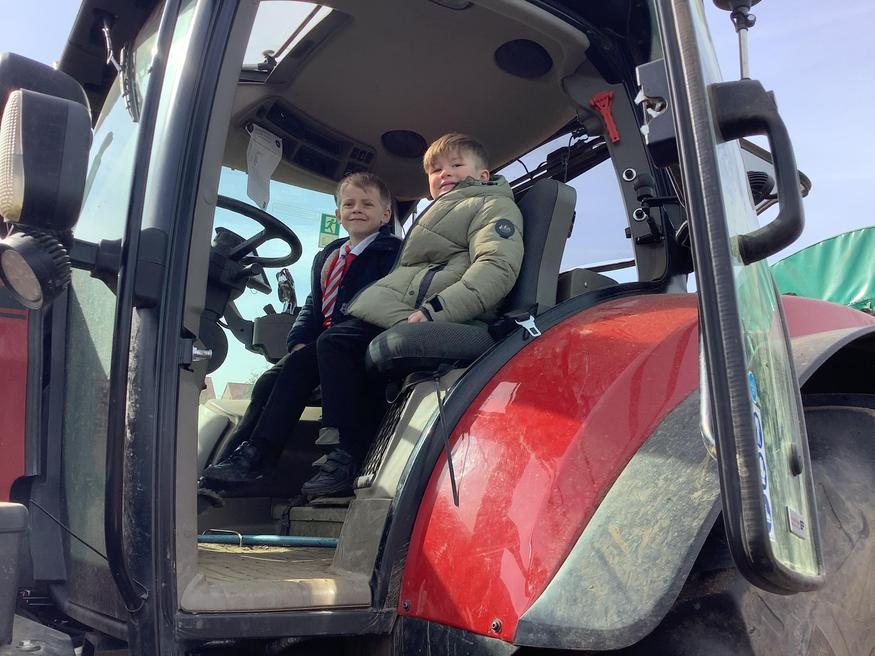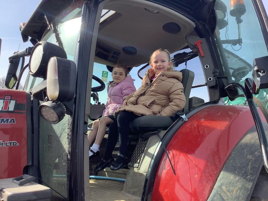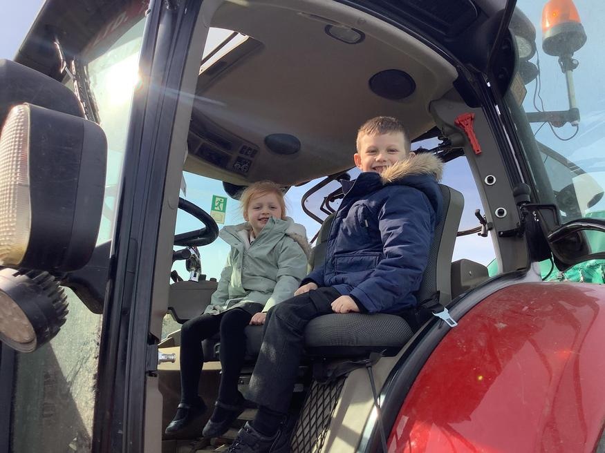 The grown ups in school were all dressed as farmers, animals and scarecrows , and then we got to meet farm animals, practice what it would be like milking a cow and even go on a tractor ride, and sit in the tractor!!