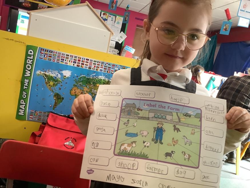 In the classroom there were lots of farm themed activities, such as making tractors and farms in construction, writing sentences about farm animals, colouring farm pictures by numbers, and labelling things on a farm!