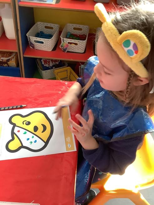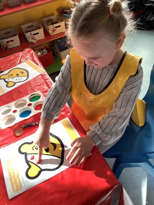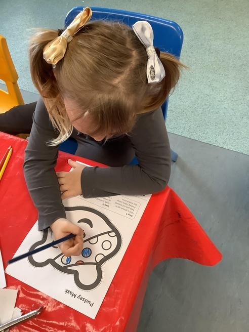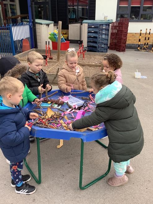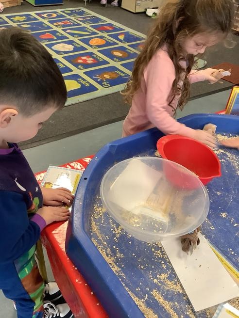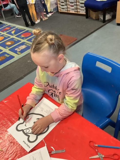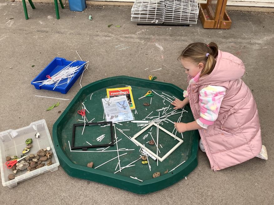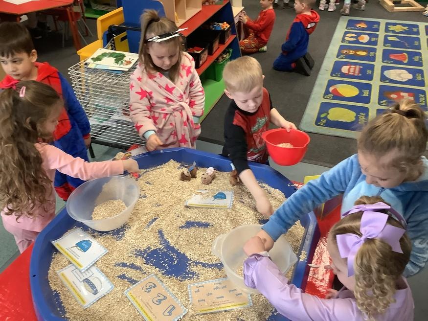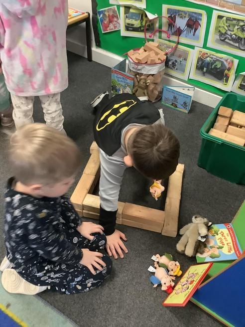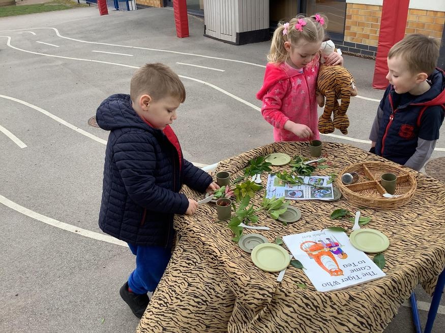 We took part in lots of different activities all surrounding some of out favourite texts. Inside we counted magic beans to match amounts with Jack and the Beanstalk, made porridge for the 3 bears whilst exploring capacity too, role played the little red riding hood, both with masks and in the puppet theatre!