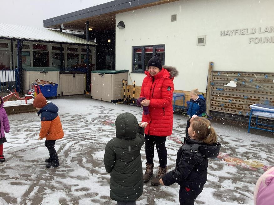 we were most excited when it started to settle and had big plans for snowball fights and snowmen building when we went home!