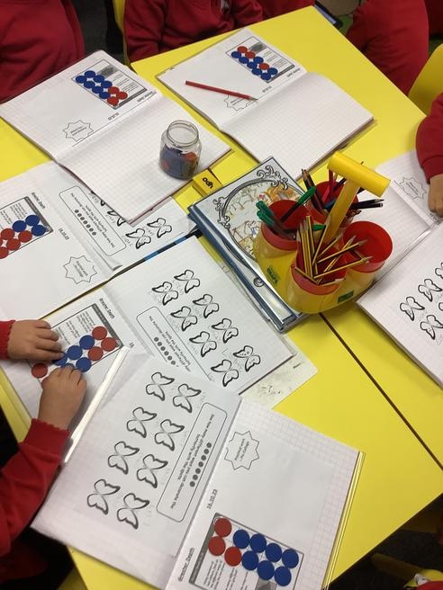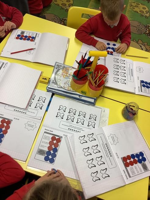 The children have been using different resources and strategies to develop their understanding of addition and subtraction.