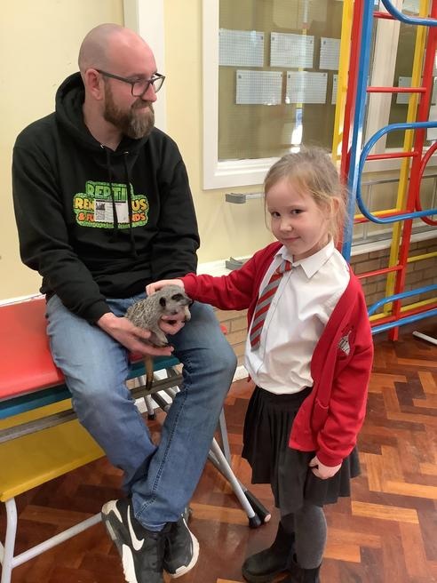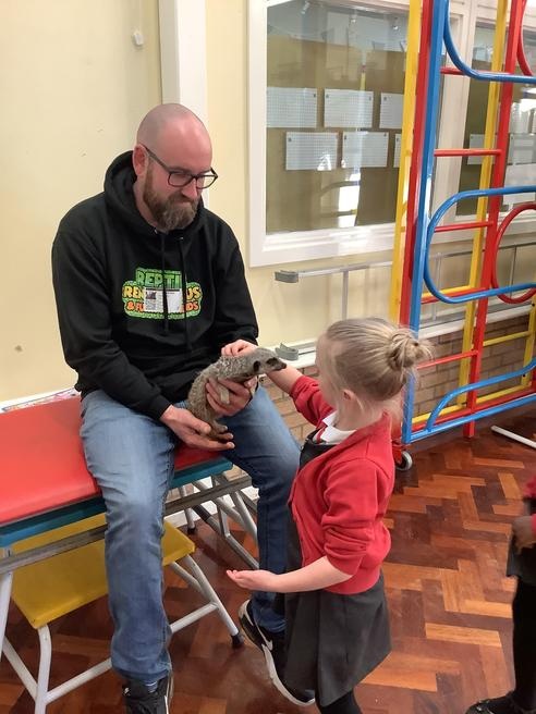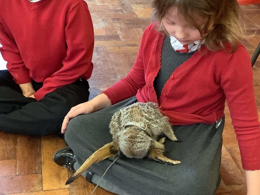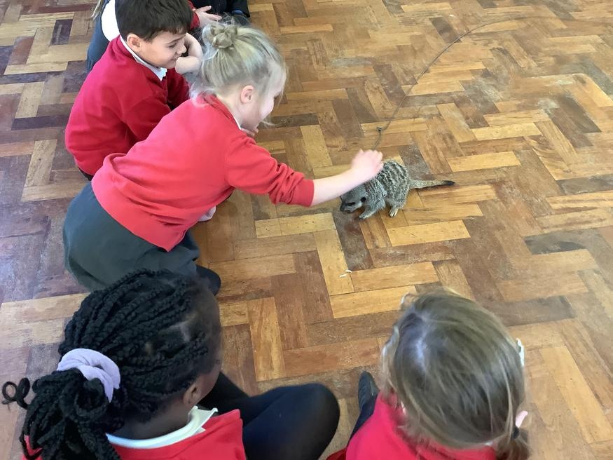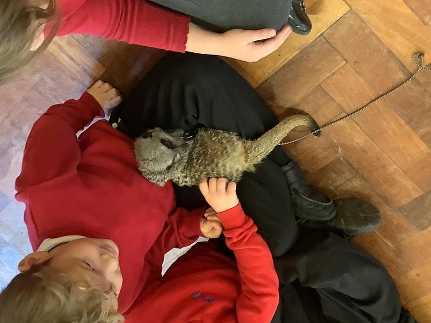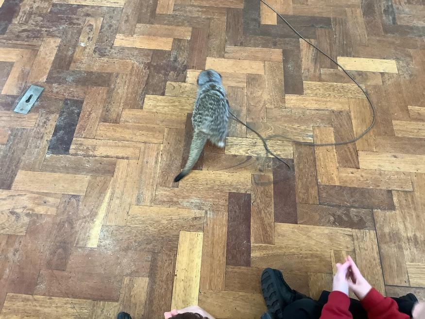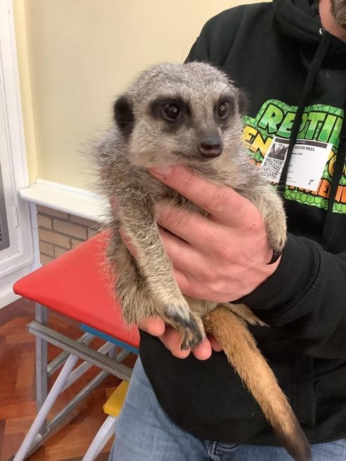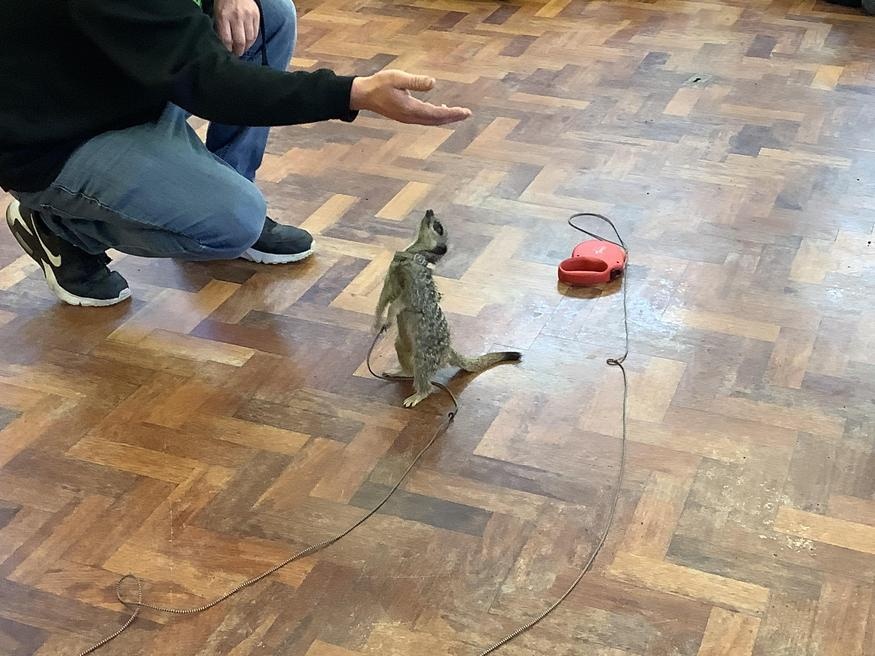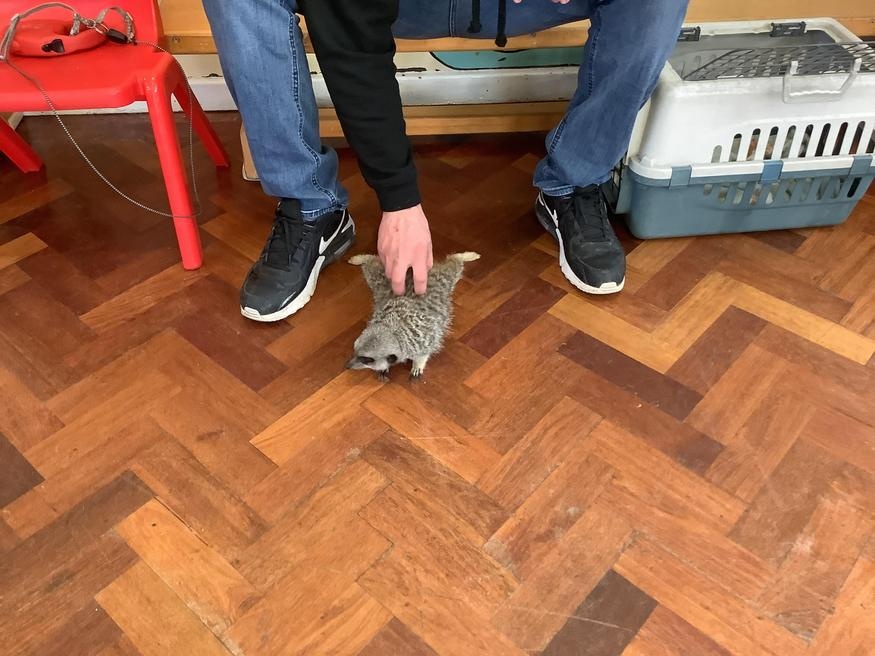 We had a cute and furry visitor today… Mouse the meerkat. He was very curious about us and we loved meeting him. He loved getting cuddles and back scratches! We were happy to oblige! Mouse especially loved getting fed bits of chicken. Mouse is welcome back anytime!