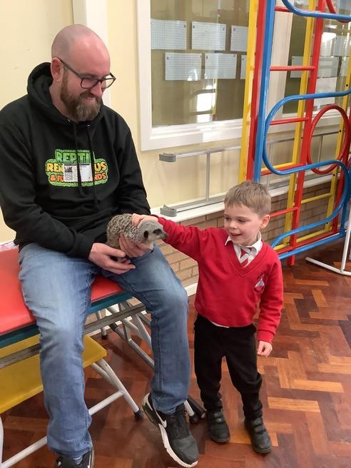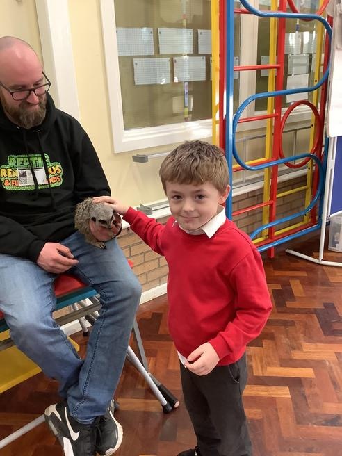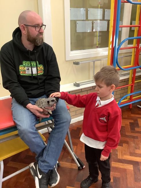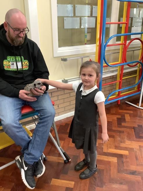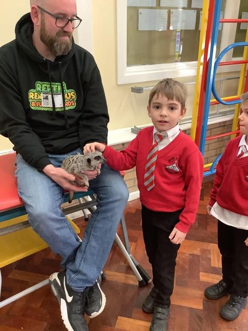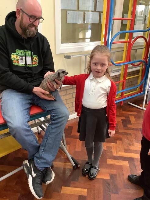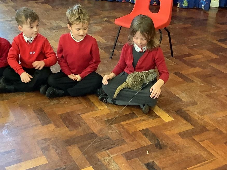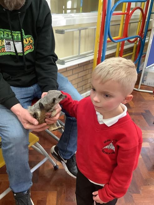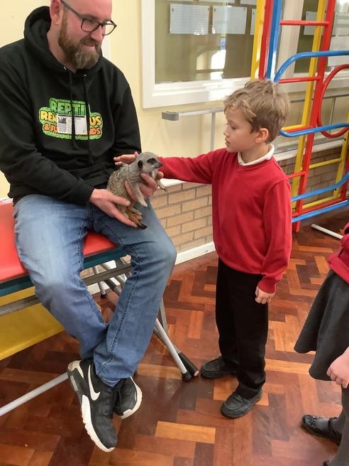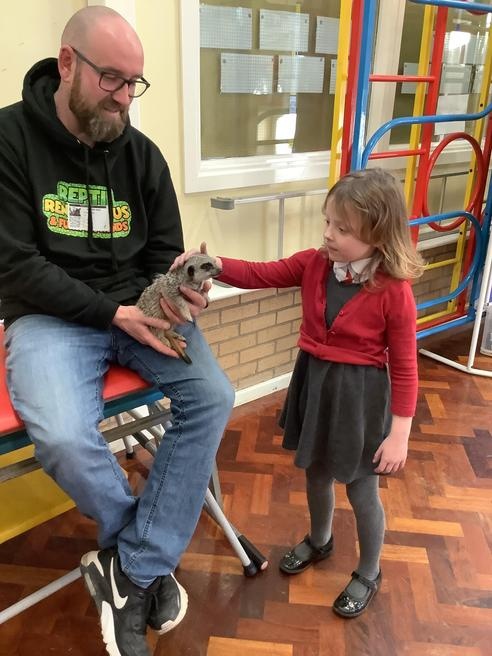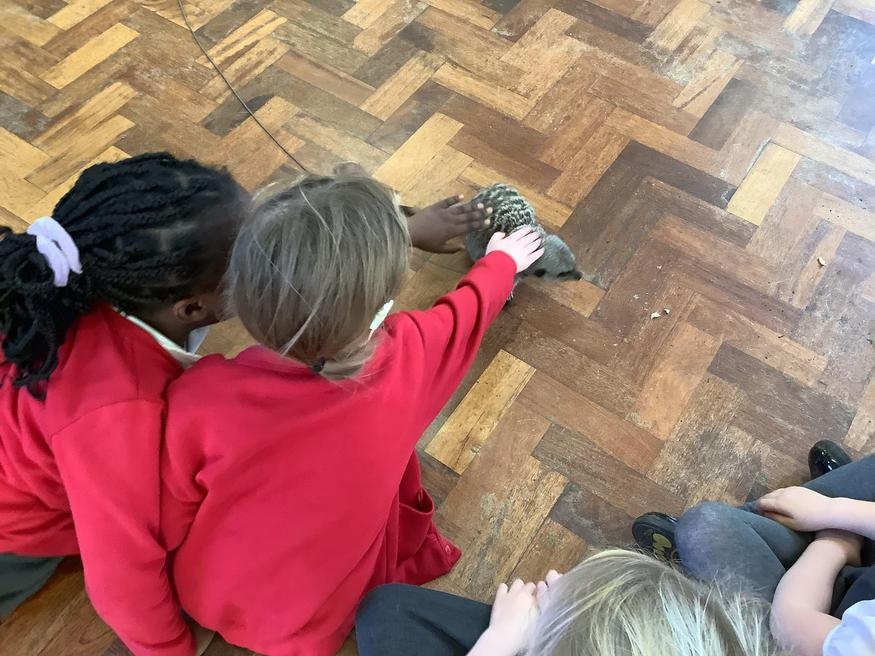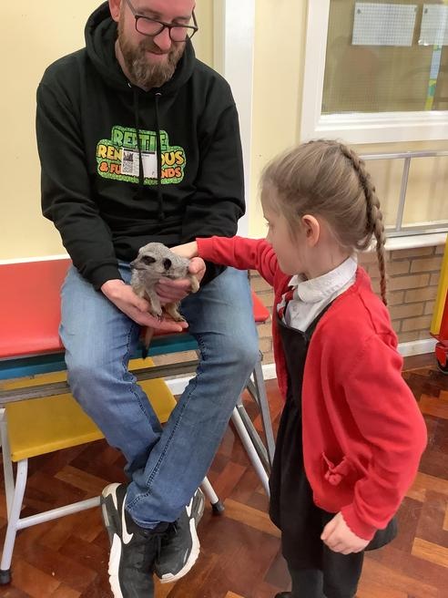 We had a cute and furry visitor today… Mouse the meerkat. He was very curious about us and we loved meeting him. He loved getting cuddles and back scratches! We were happy to oblige! Mouse especially loved getting fed bits of chicken. Mouse is welcome back anytime!