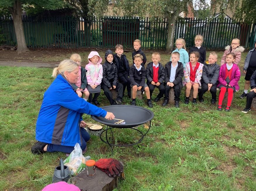 Today the children got to show all their parents, their learning from this half term. We then had a small fire and learnt about fire safety and also got to watch how popcorn can be cooked on a fire. Luckily, we got to eat some too. We then had some activities to take part in including a hunt around school for the plotters who were hiding.