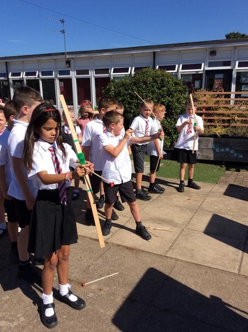 Robin Hood has written to us to ask if we have the skills needed to join his band of outlaws. Today we practiced our arrow shooting skills and made our own bows. We are ready to join in the journey with his Merry Men!