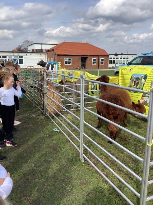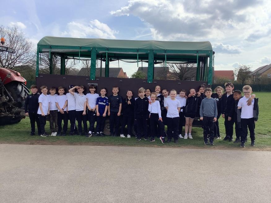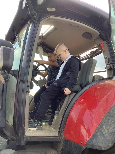 Today, we had a surprise visit from Boston Park Farm. During the day, we got the opportunity to enjoy a tractor ride and then we were able to have a go at sitting in the driver's cab to see what driving a tractor would be like. We then visited the farm where we got to meet the animals. Our favourite animal was Meg, the sheepdog, who we got to play with. We really enjoyed the day.