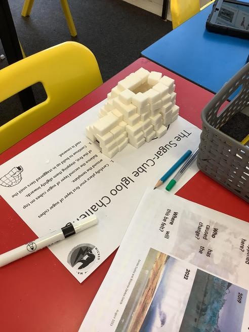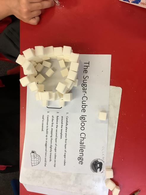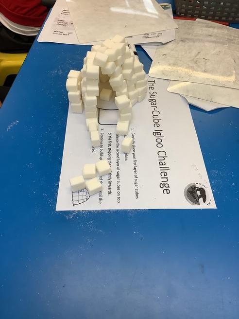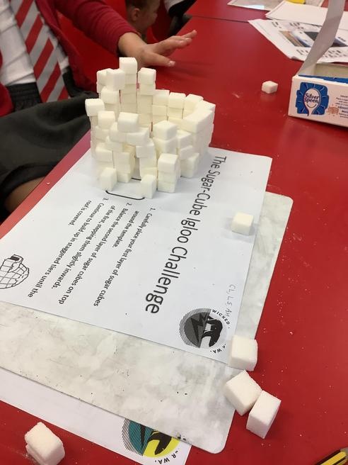 Part of our day involved making igloos out of sugar cubes. See the images below of us in action trying to build them. It was harder than it looked. You can also see images of the more successful creations that have been sent to the Wicked Weather Watch website as part of a nationwide competition to be voted on. The winning igloo creators will receive a mystery prize from the Wicked Weather Watch team!
