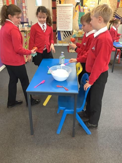 As part of our Egyptian topic, we have learnt about the process of mummification. To see how the process works, we mummified a tomato. We have kept one tomato as it is and placed it in a zip lock bag as our control tomato so that after 40 days, we can compare it to the mummified tomatoes and observe the similarities and differences. Below are images of us mummifying the tomatoes.