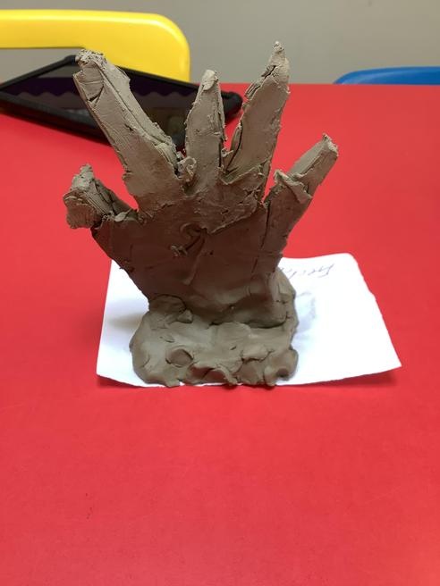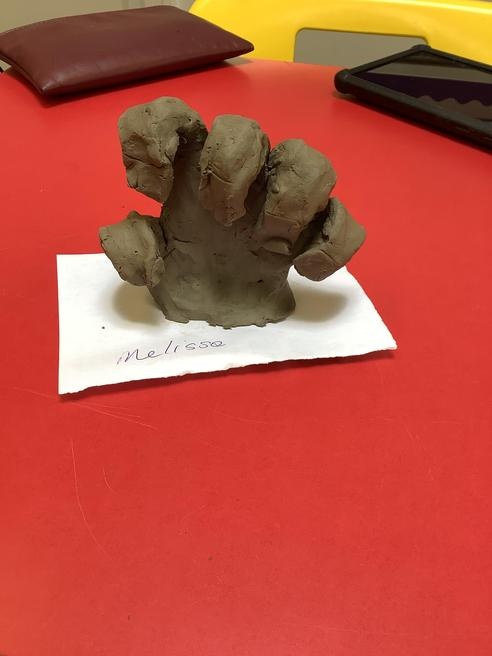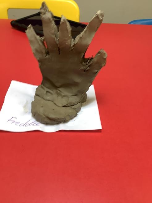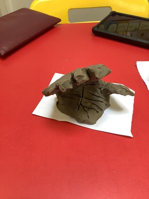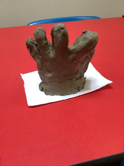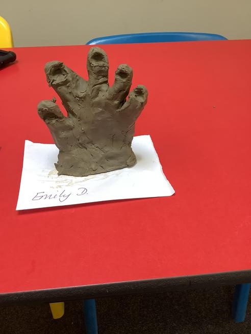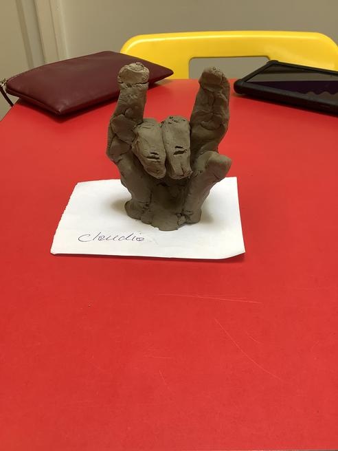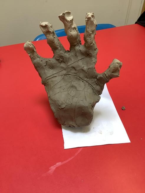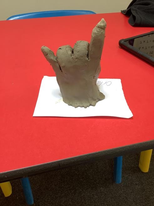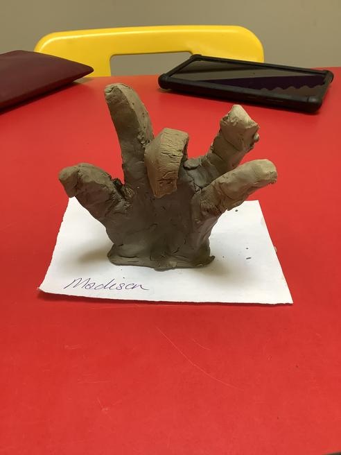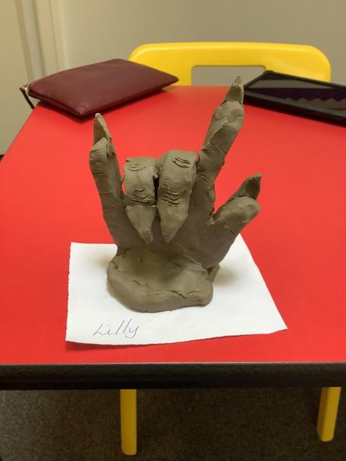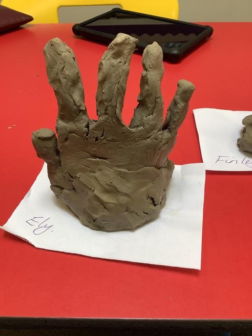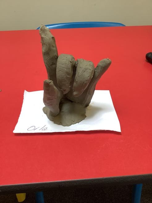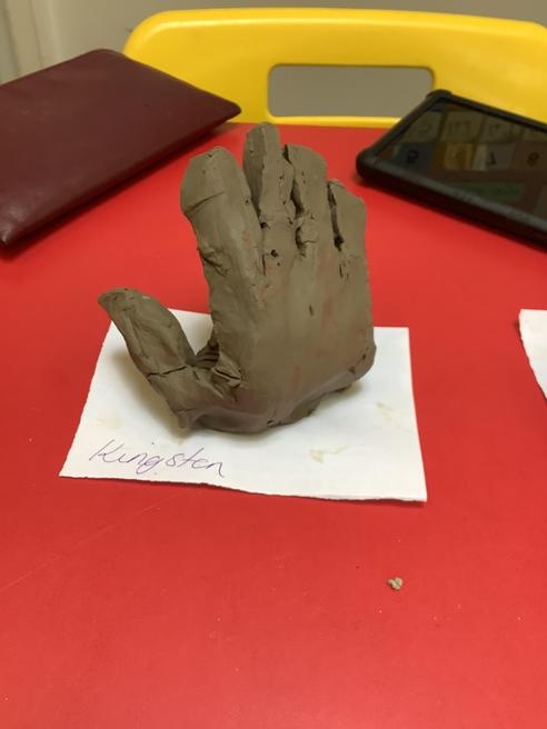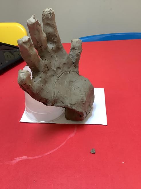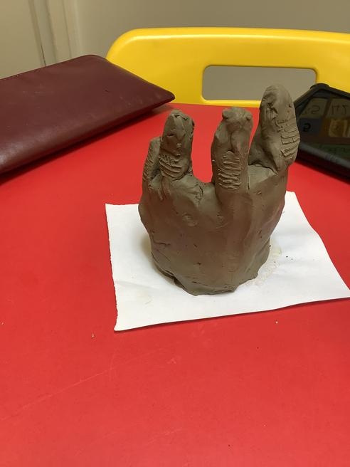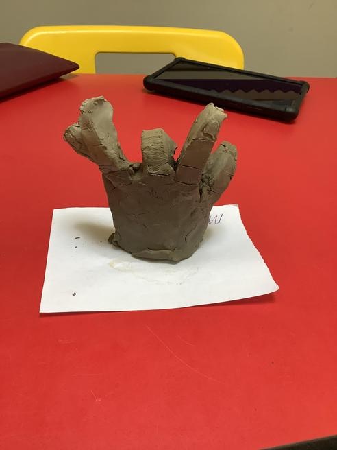We used clay to sculpt a hand. We spent time studying our hands before deciding on which position we would like to create in clay.