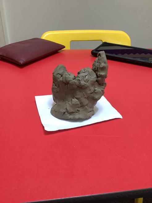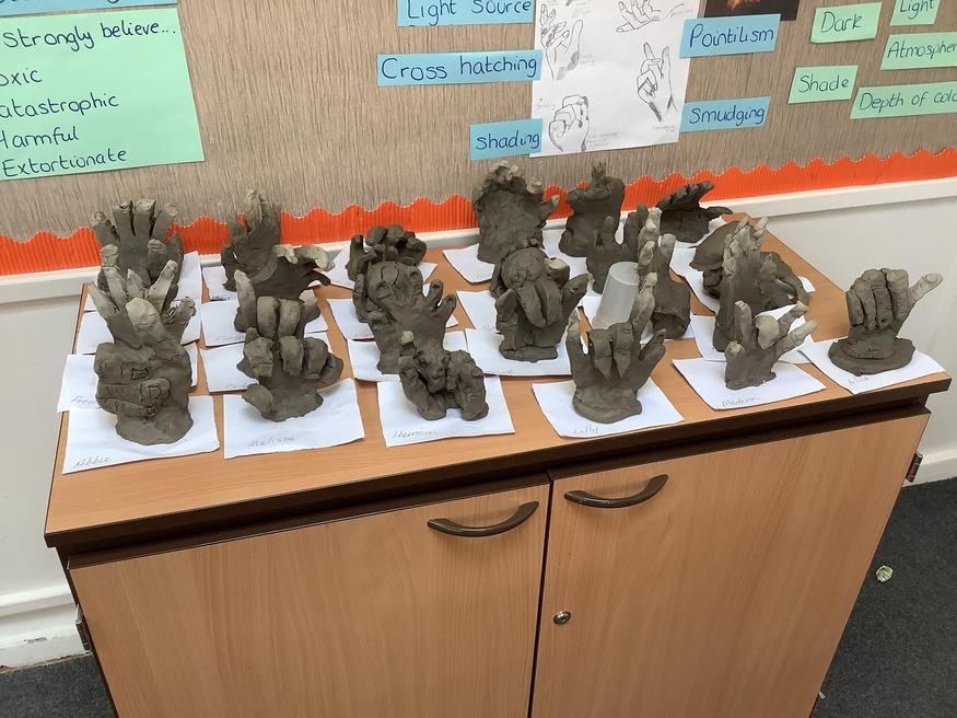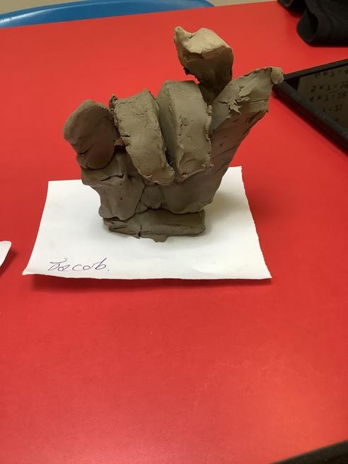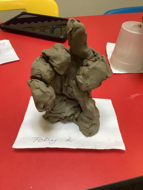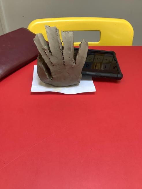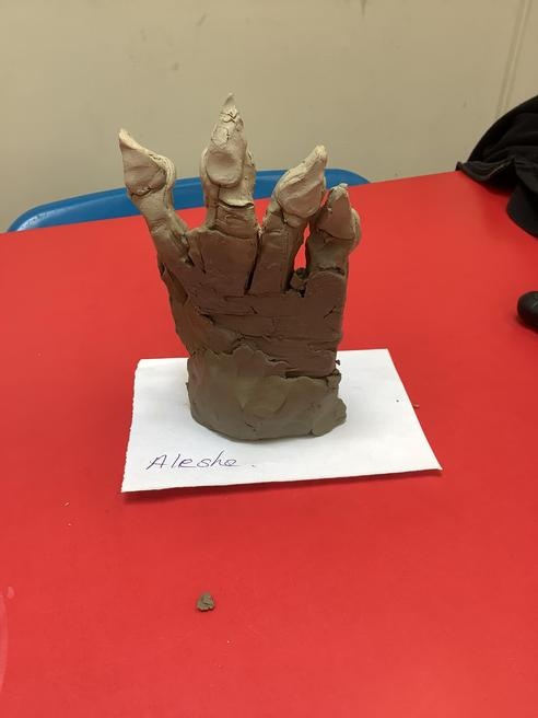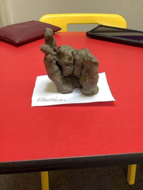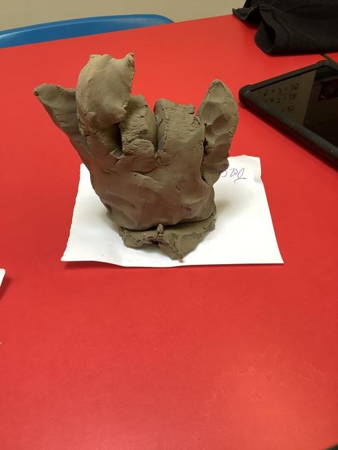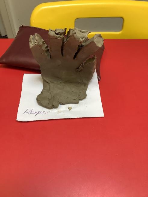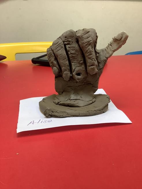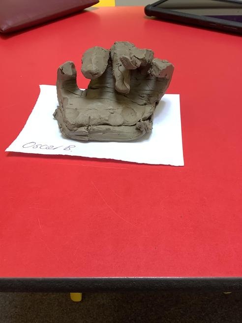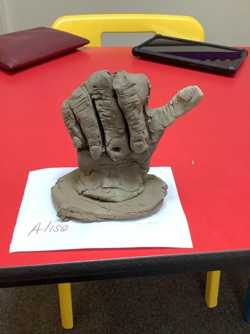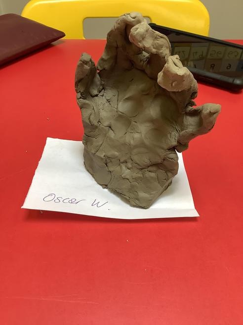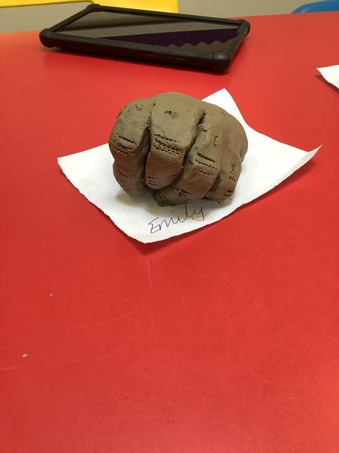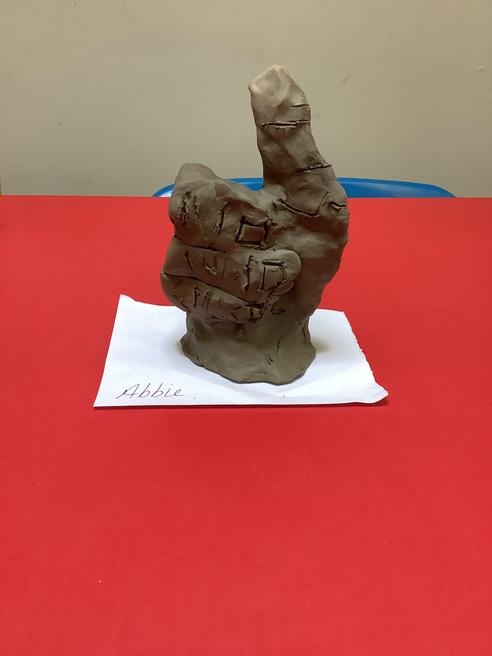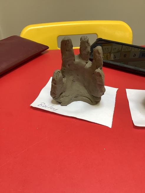We used clay to sculpt a hand. We spent time studying our hands before deciding on which position we would like to create in clay.