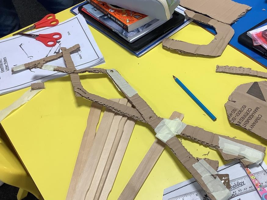 The children enjoyed planning, designing, making and evaluating their litter pickers. They used materials and equipment effectively to create a litter picker for their intended audience. They carried out market research by asking other children questions to inform their design.