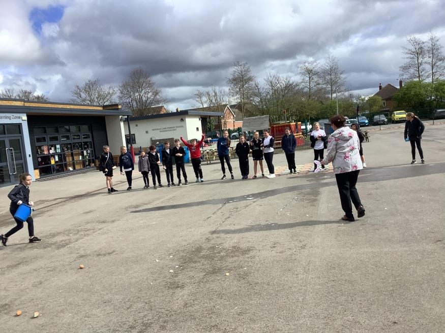 The children enjoyed the Easter egg roll. Rylan was our proud winner!