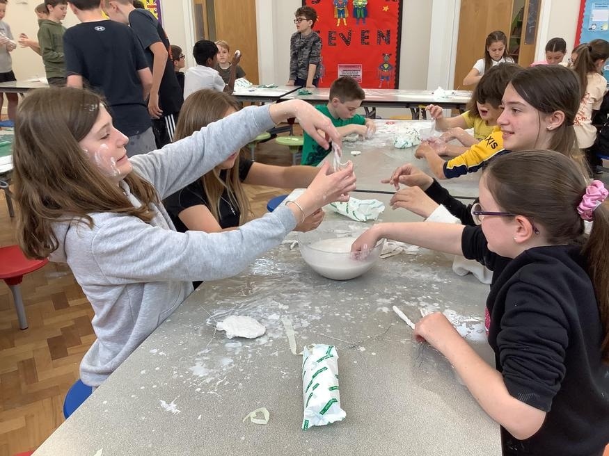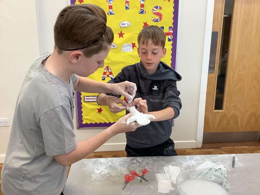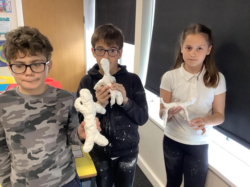 Year 6 have spent the morning creating their sculptures from mod-roc. As you can see, they have had lots of fun.