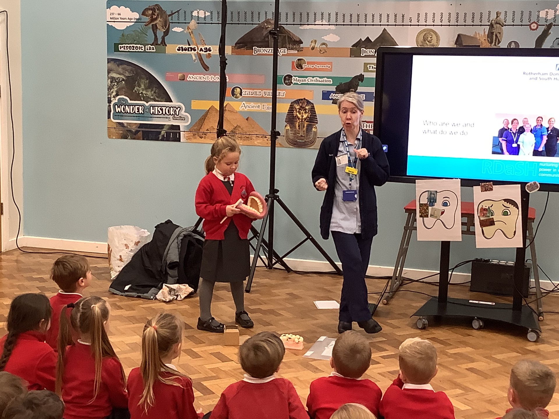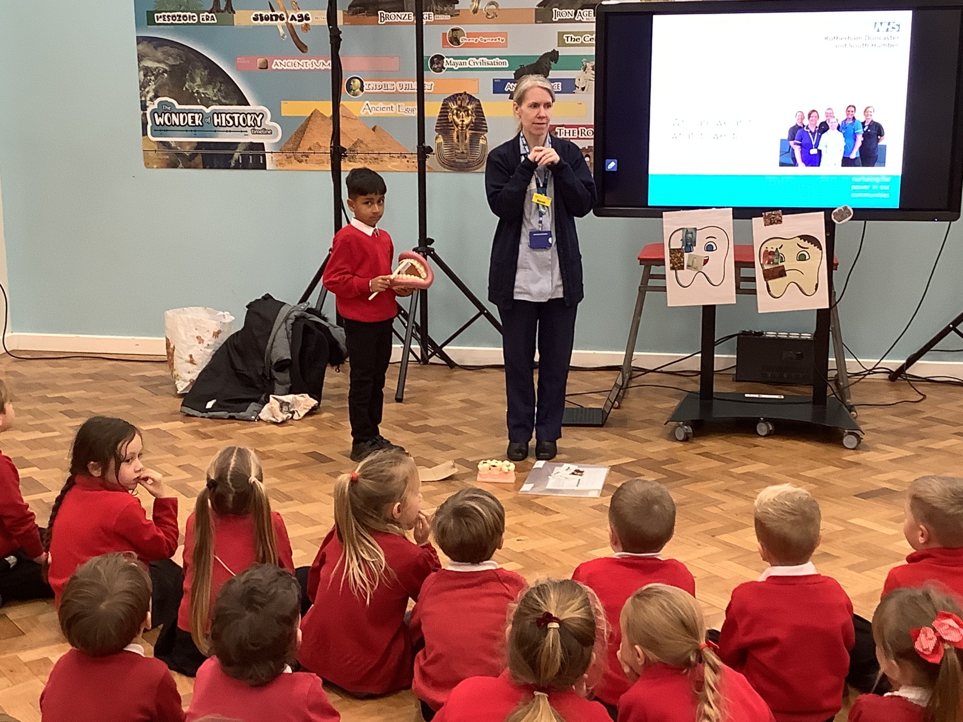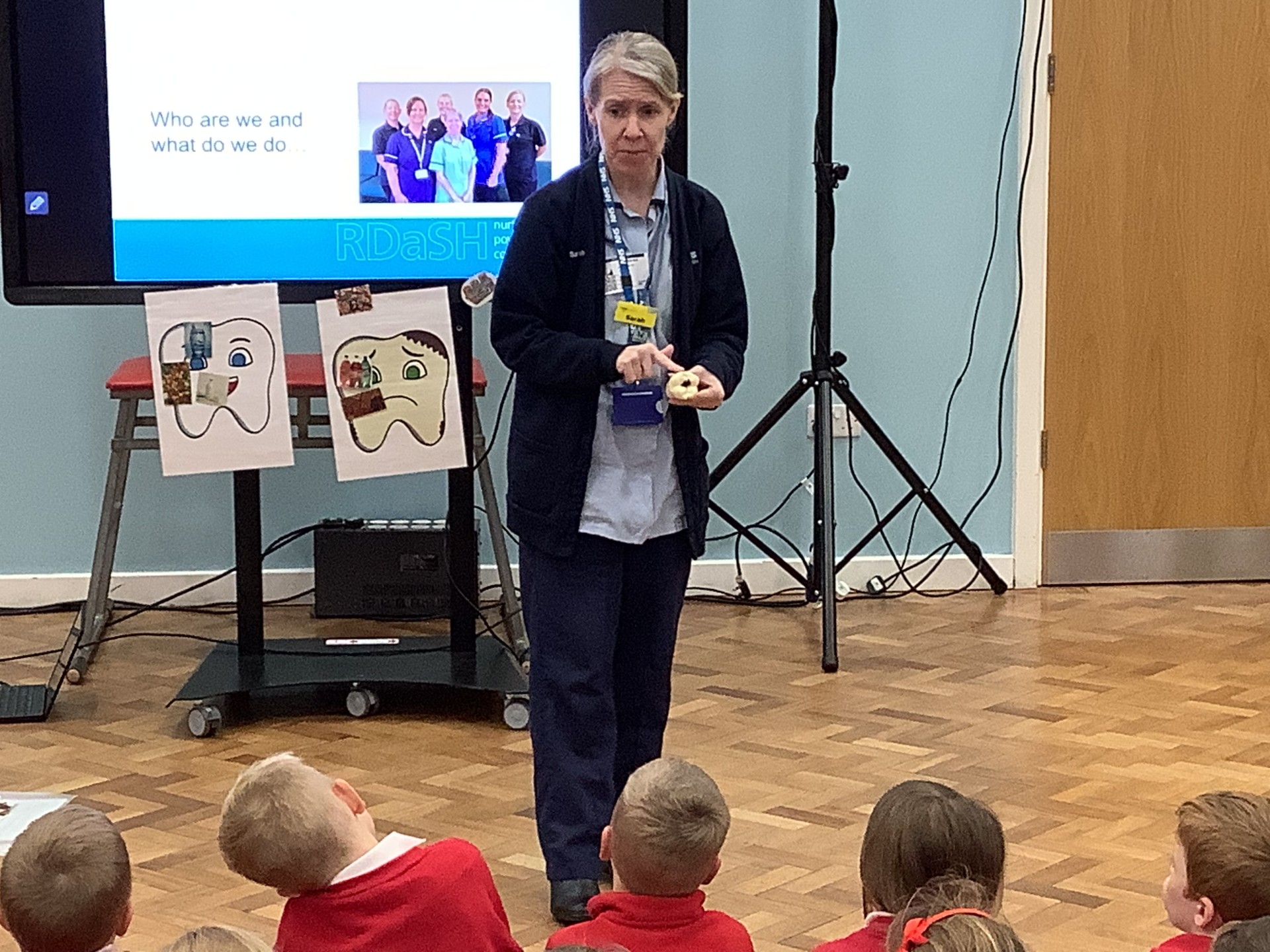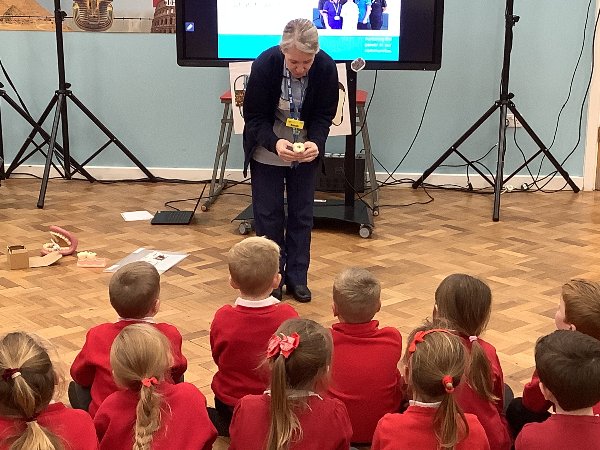 The school nurse visited Year 1 to help us learn how to take care of our teeth.