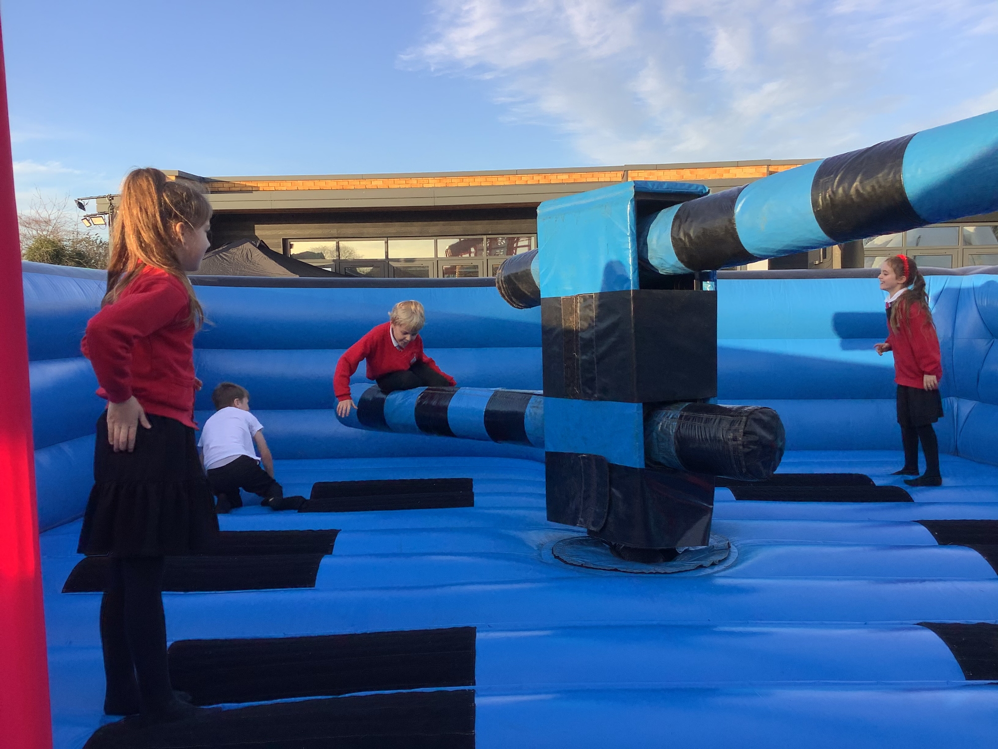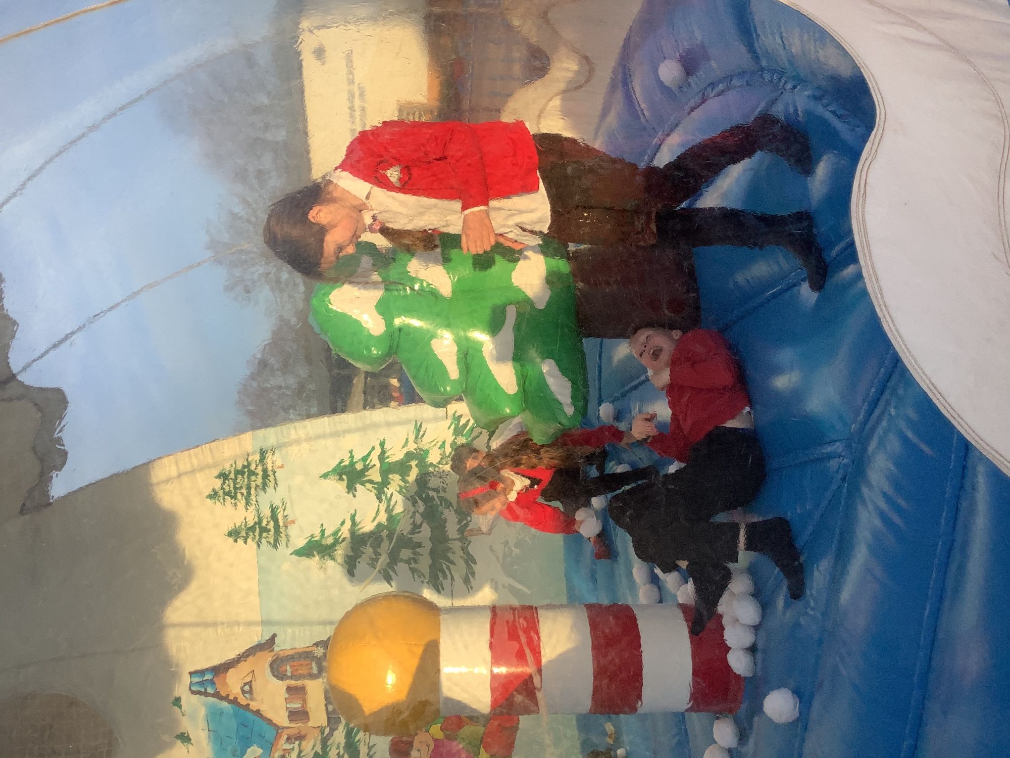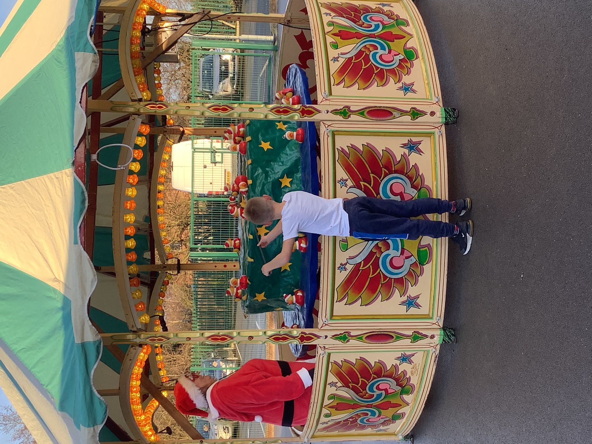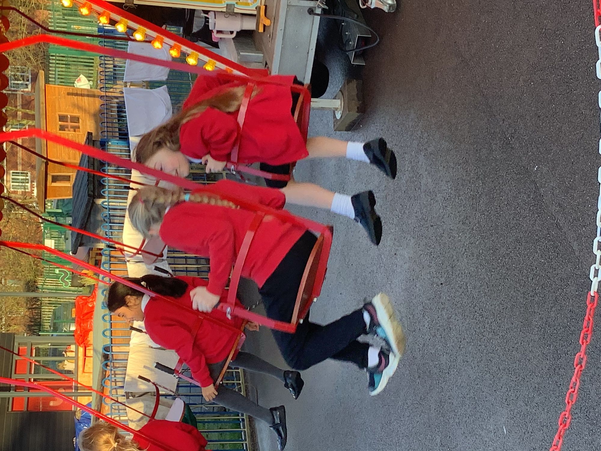 We arrived at school to a wonderful surprise.  The playground was full of rides! During the day, we had a session outside visiting the fairground rides which included: a candy cane wipeout, helter-skelter, hook the duck, swing boats and a snow globe, to name a few.  Have a look at the pictures of us below enjoying these activities.