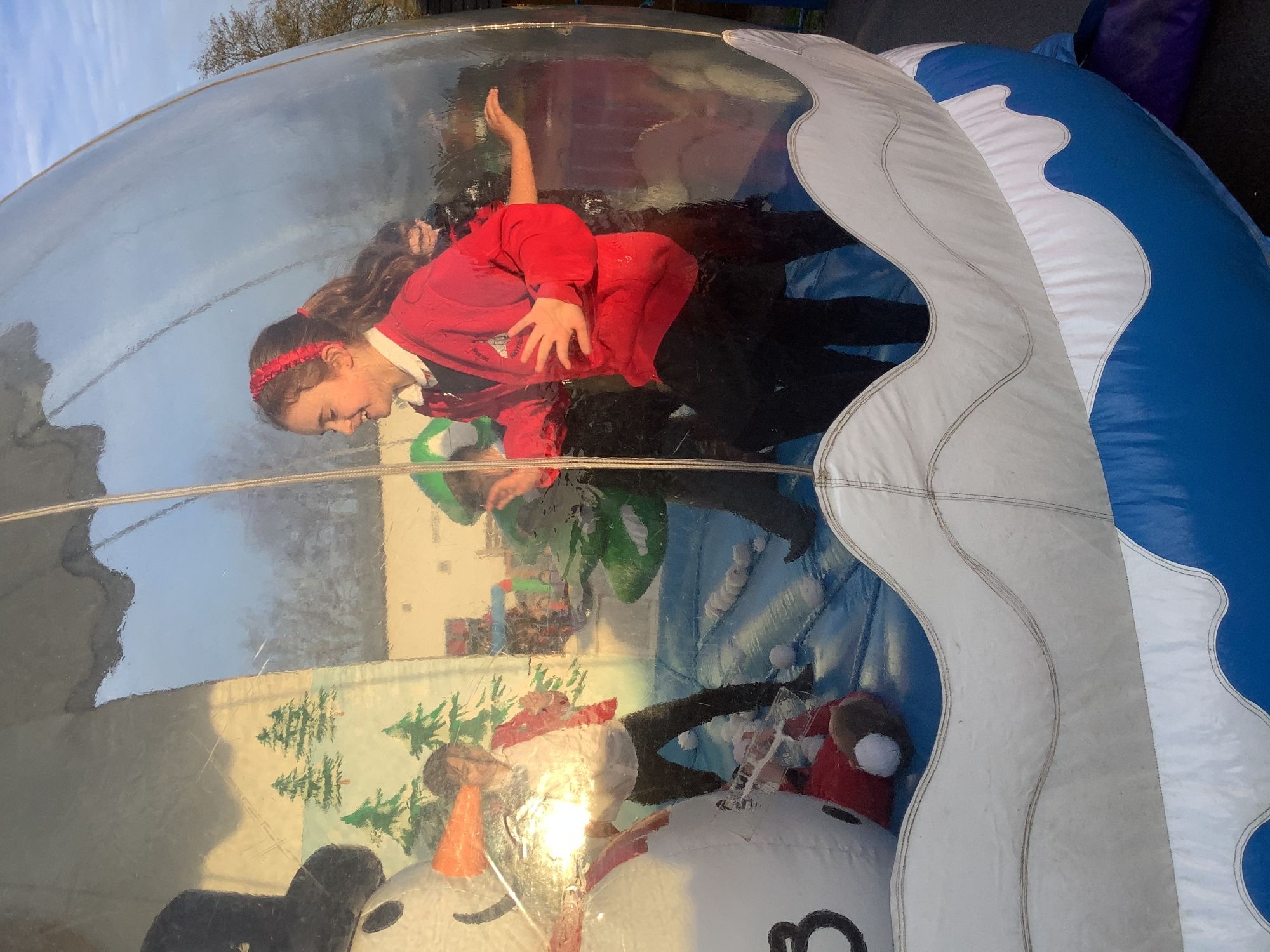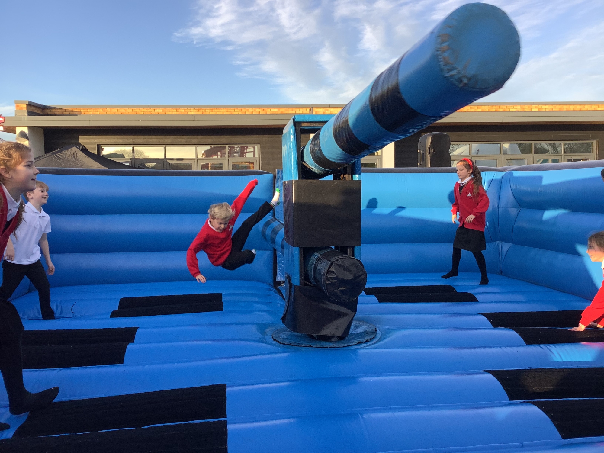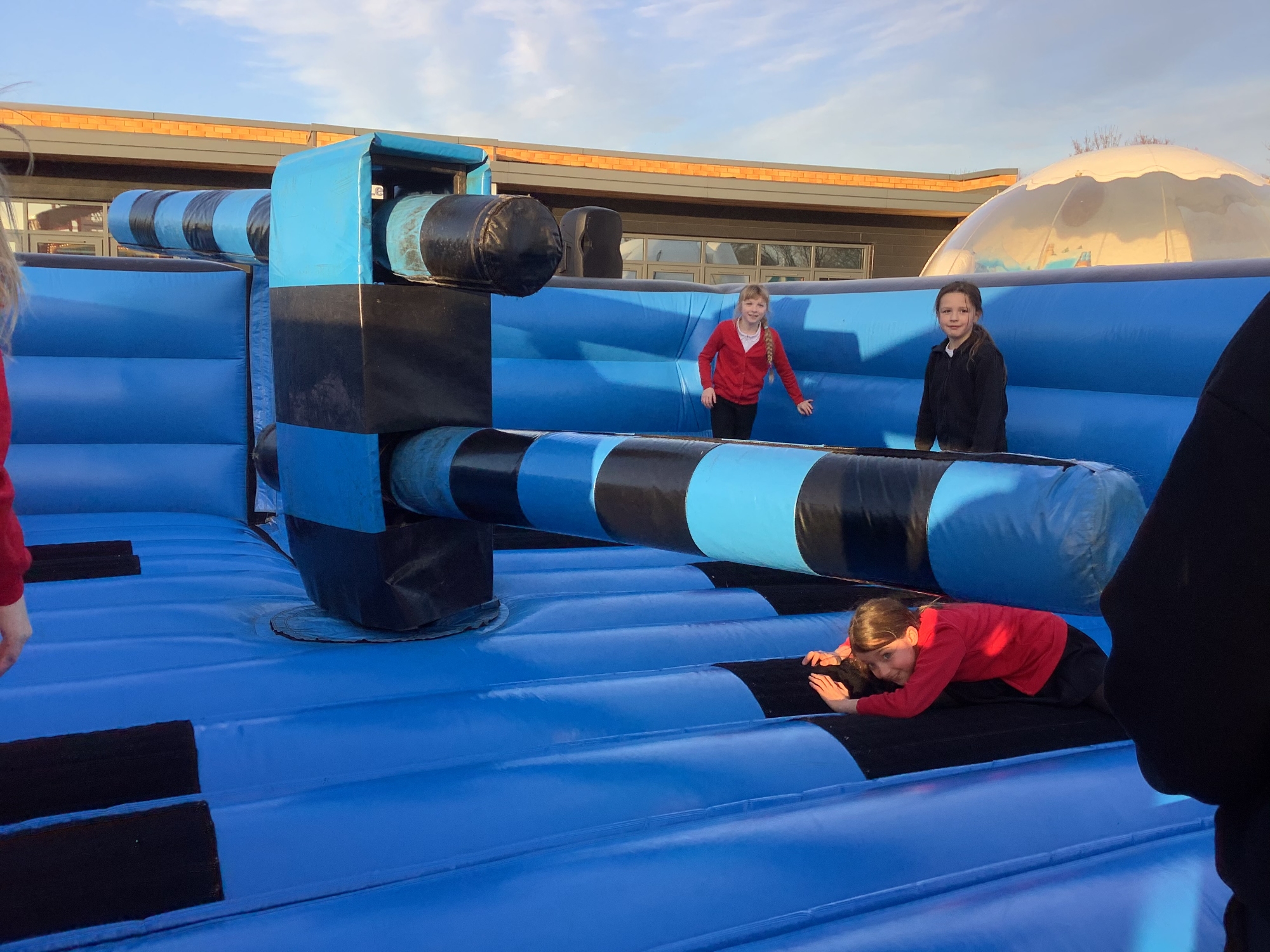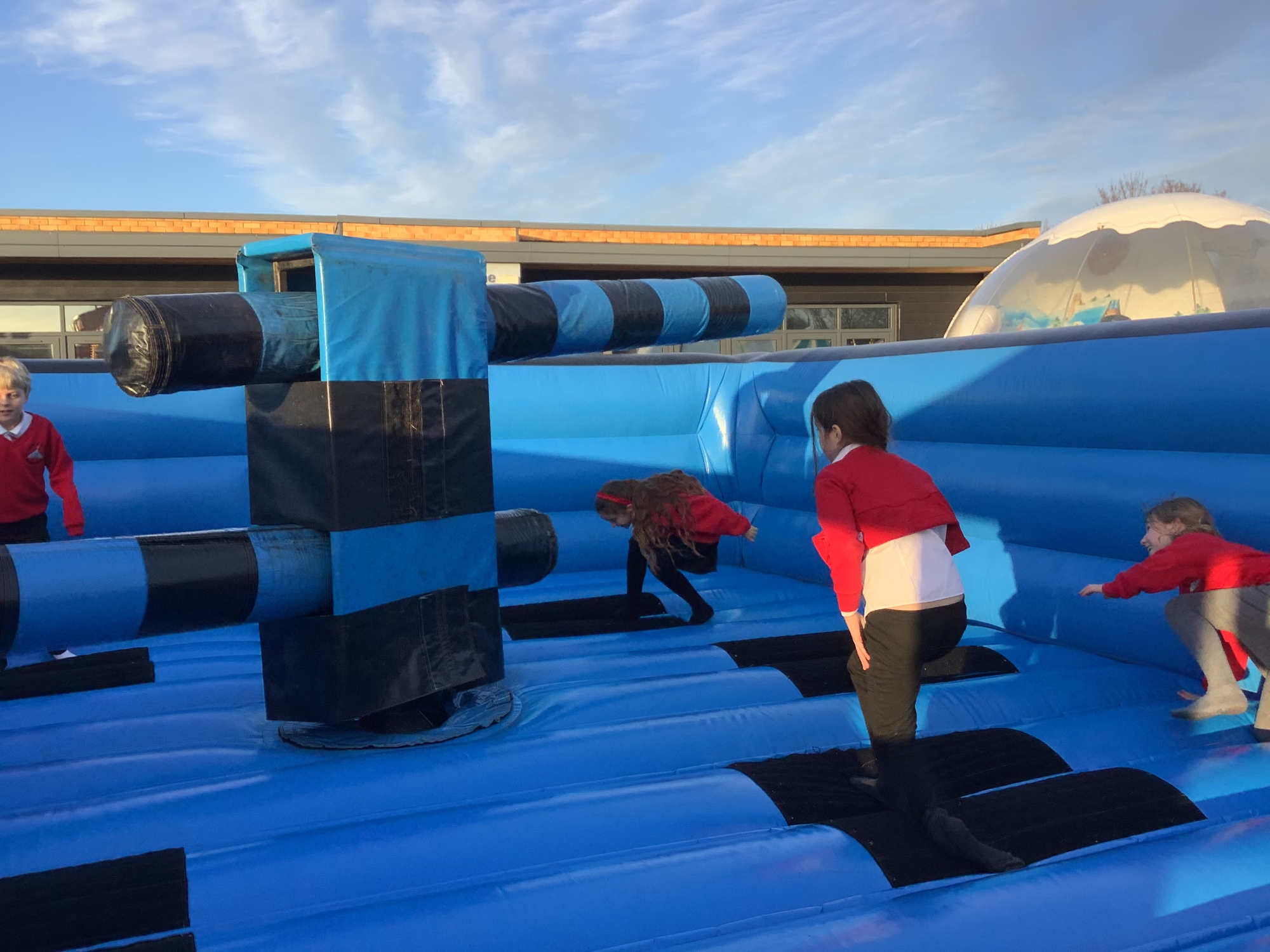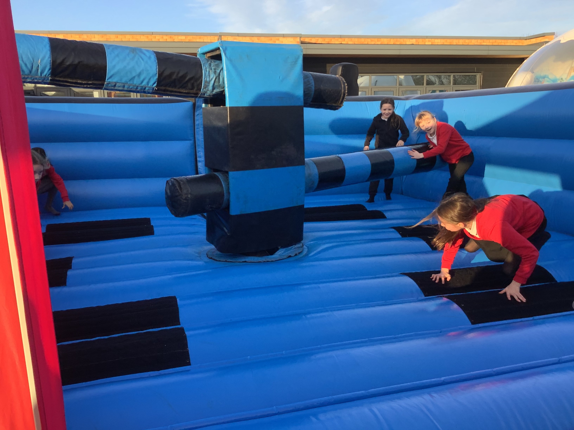 We arrived at school to a wonderful surprise.  The playground was full of rides! During the day, we had a session outside visiting the fairground rides which included: a candy cane wipeout, helter-skelter, hook the duck, swing boats and a snow globe, to name a few.  Have a look at the pictures of us below enjoying these activities.