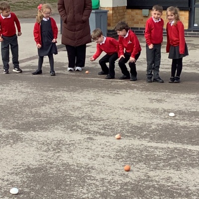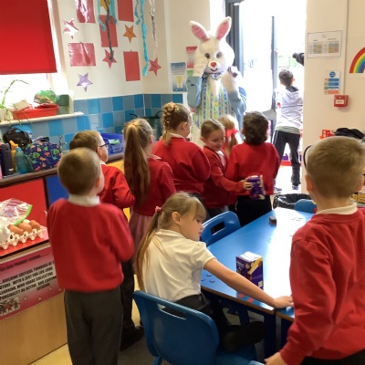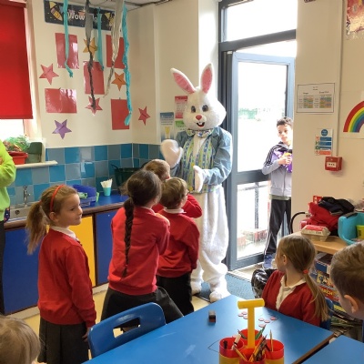 Wow, it has been a crazy few weeks! We did lots of fun activities, such as, egg rolling. We also had a visit from a special visitor...the EASTER BUNNY! He was so lovely and even gave us Easter eggs. It was so lovely!