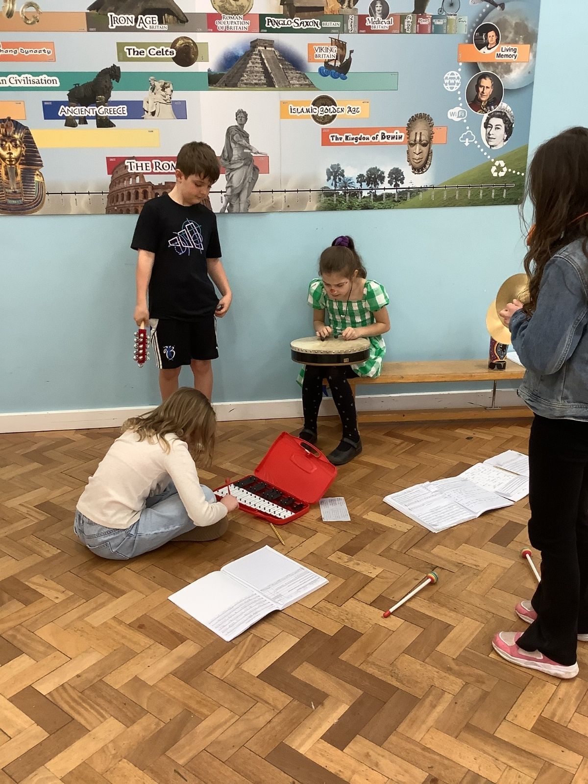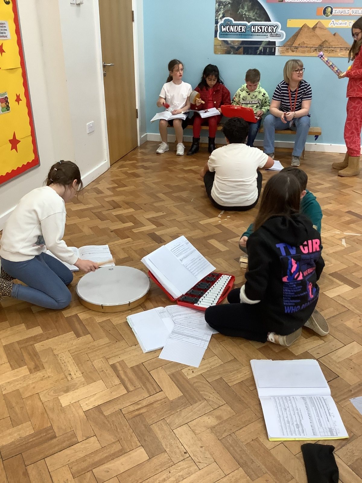 As part of our Ancient Egyptian topic, we have been listening to some examples of ancient Egyptian music, and then: identifying the types of instruments that were used, the tempo, pitch and dynamics of the music. We then worked in groups to compose our own piece of Egyptian style music before practising and then performing it to our peers.