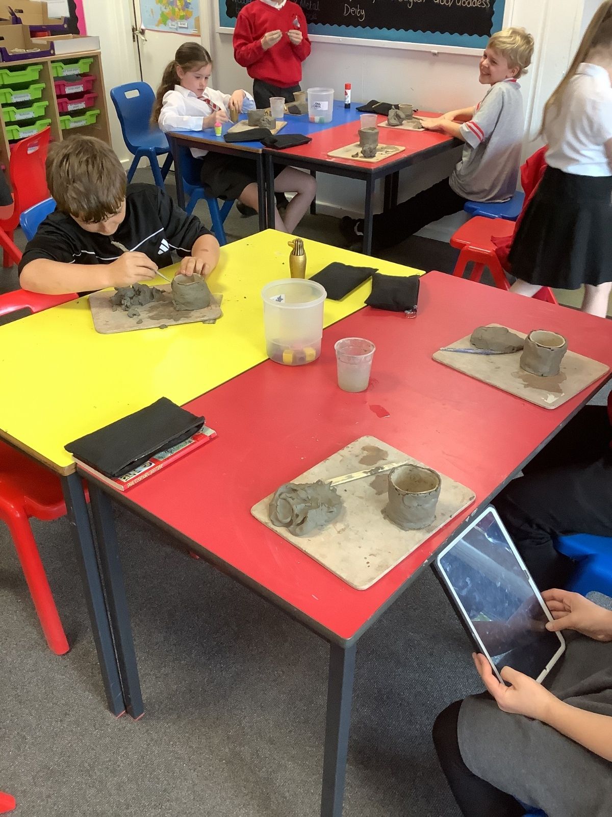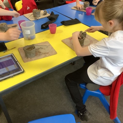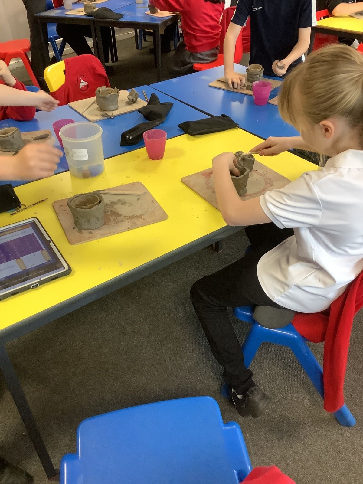We have been learning about the process of mummification and we looked at how some of the organs were placed into Canopic jars. We then, sketched a design for the lid of our Canopic jar before having a 'tinker' session with clay where we learnt how to use the 'coiling' and 'pinching' technique to form the jar and the head. We then decided which technique we preferred and used this to make our own version of a Canopic jar.