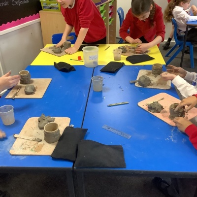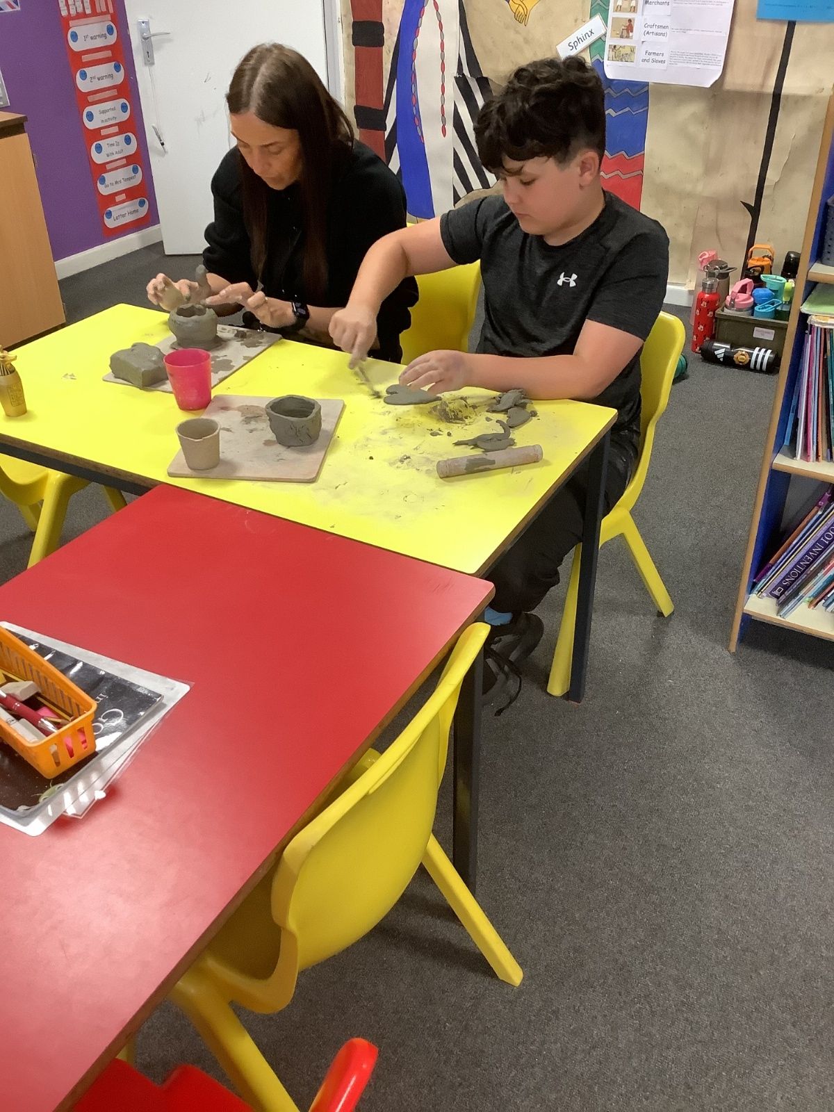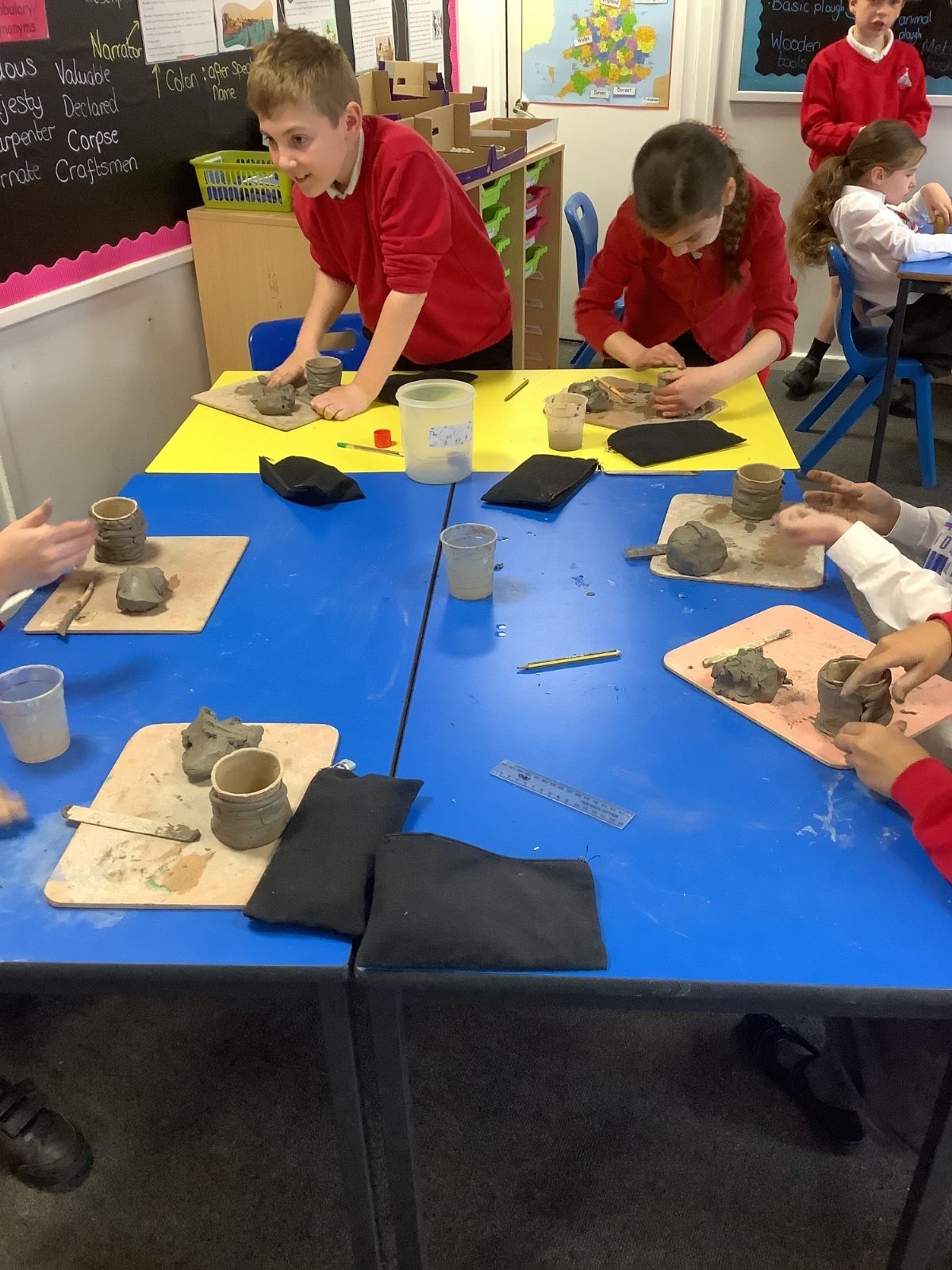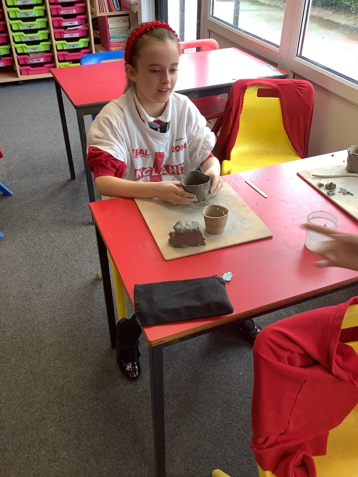 We have been learning about the process of mummification and we looked at how some of the organs were placed into Canopic jars. We then, sketched a design for the lid of our Canopic jar before having a 'tinker' session with clay where we learnt how to use the 'coiling' and 'pinching' technique to form the jar and the head. We then decided which technique we preferred and used this to make our own version of a Canopic jar.