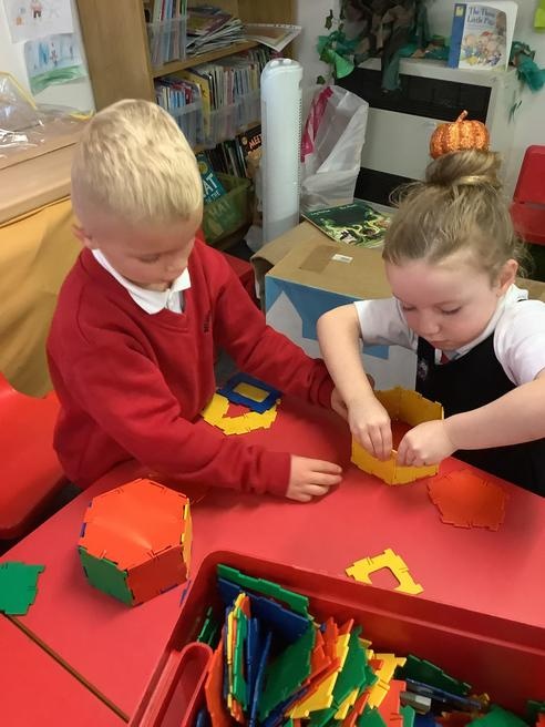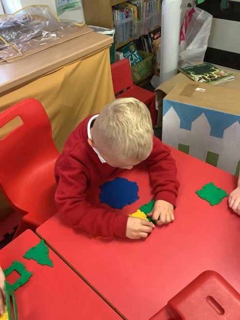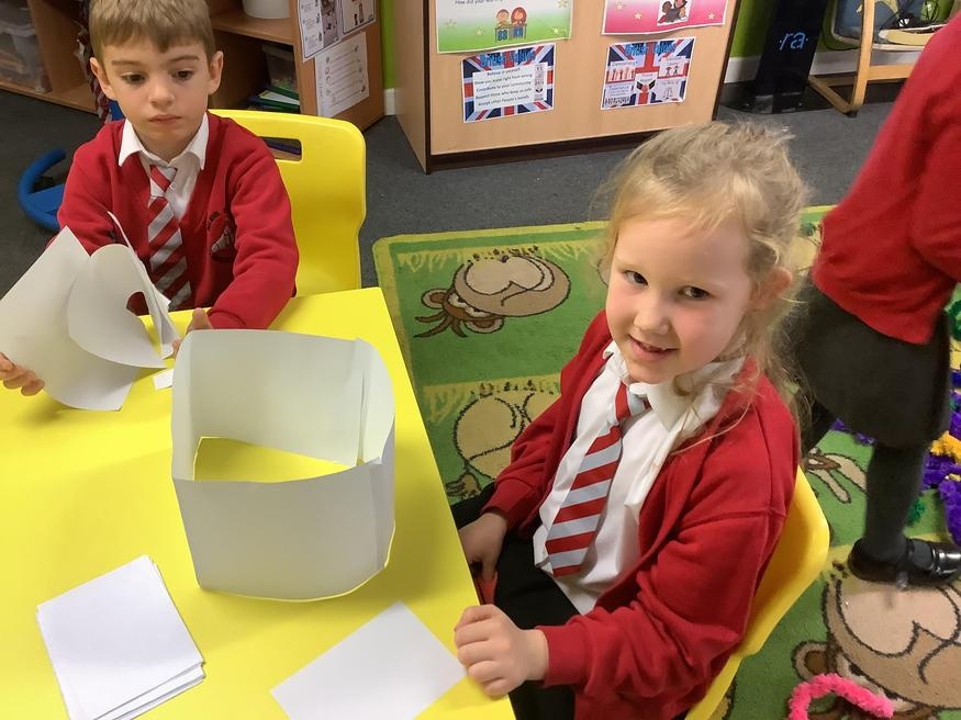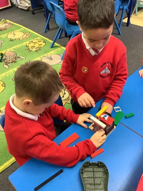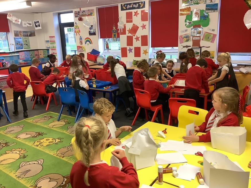 The children were devastated to learn that the Big Bad Wolf had tried to blow down the Three Little Pigs’ houses. They decided that the pigs needed to live on the school grounds to stay safe and began designing and building houses for them. The children used their knowledge of materials to create fantastic houses for the pigs. They redesigned and amended the houses as they created them. Have a look at some of our designs.